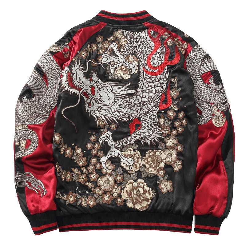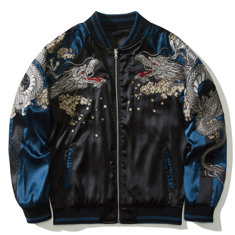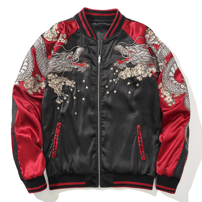 📚 横须贺重工龙刺绣棒球领夹克外套中国风双面穿春秋国潮棒球服上衣