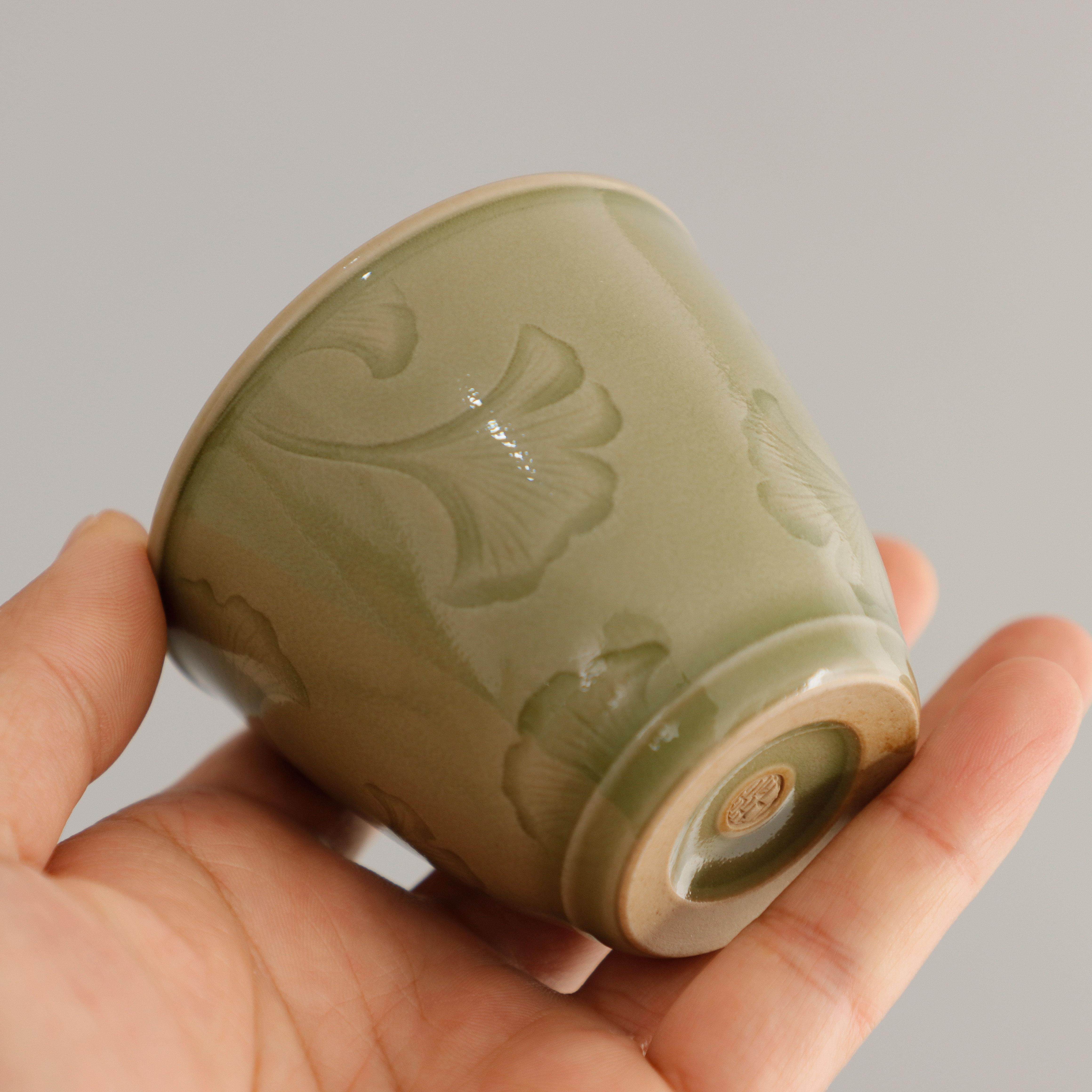 📚 耀州窑橄榄青釉焦娇手作中式复古小号薄胎青瓷仿古茶道茶具茶杯