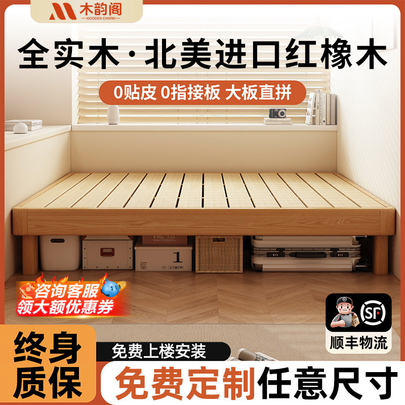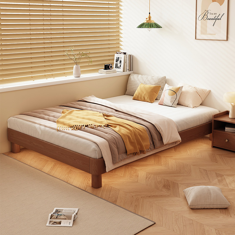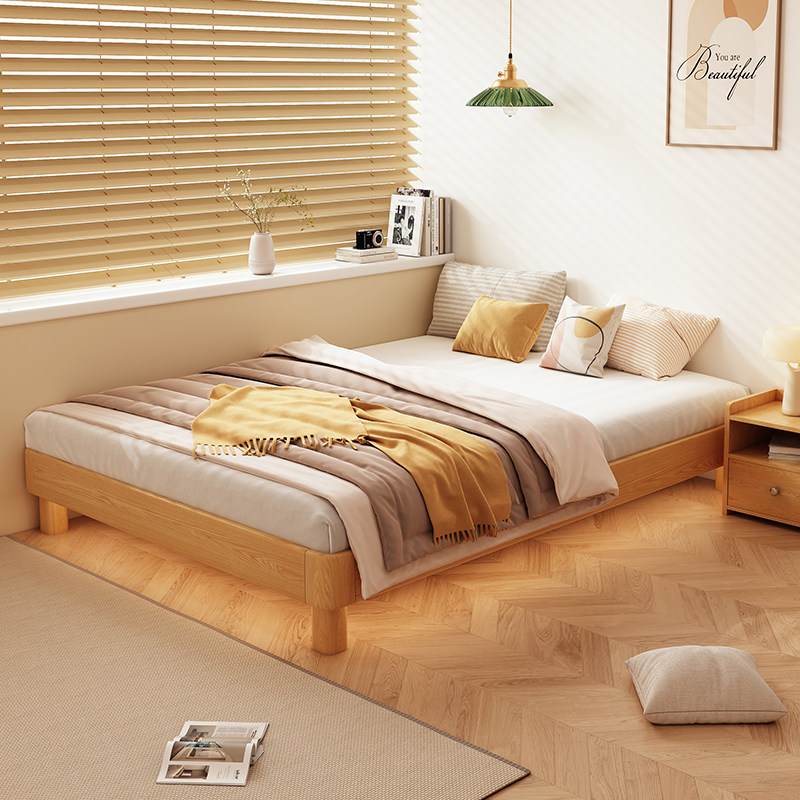 📚 全实木榻榻米悬浮排骨架无床头卧室1米8双人地台落地床家用小户型