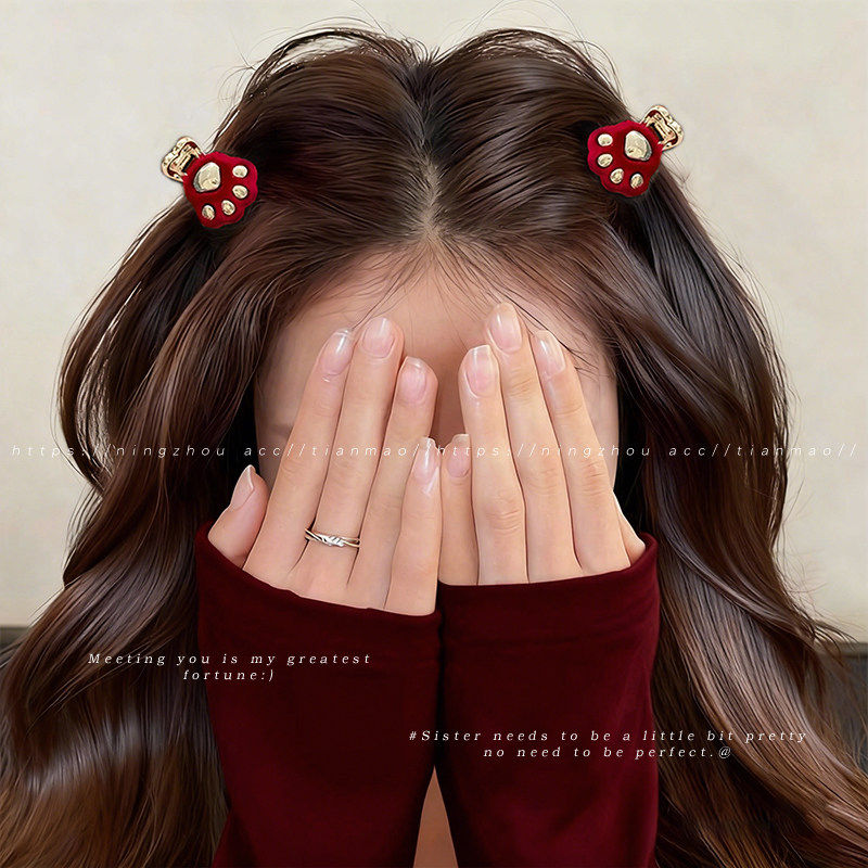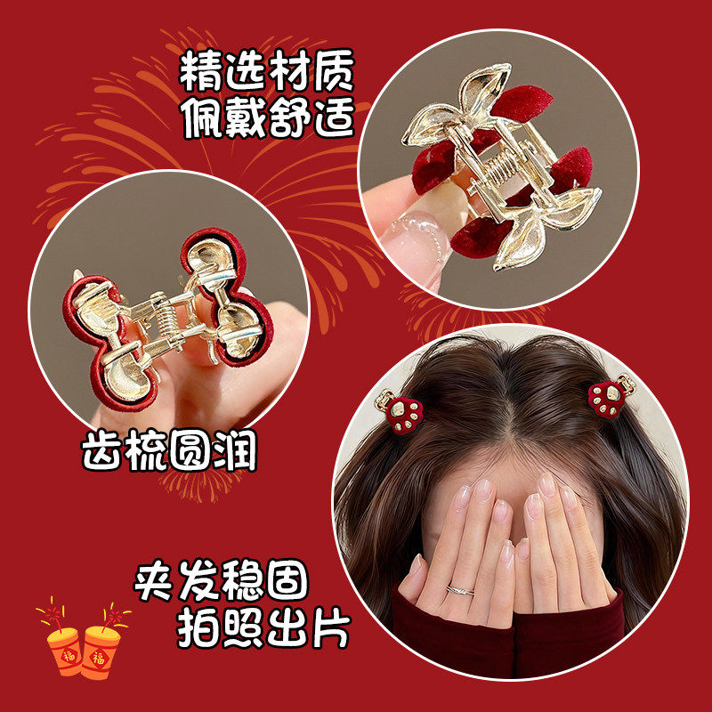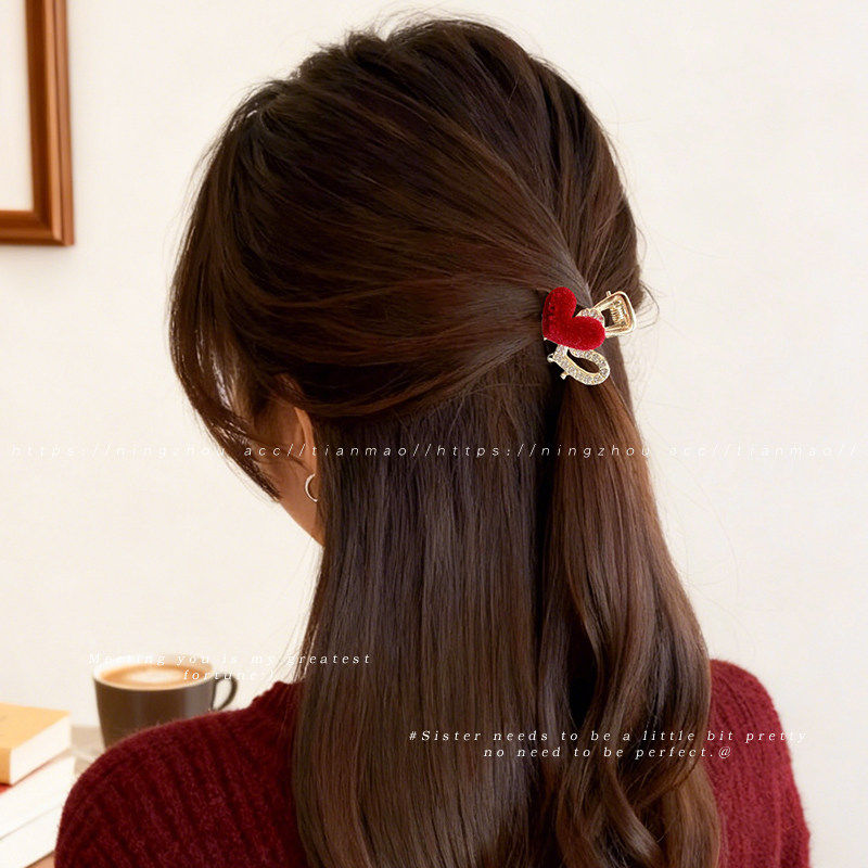 📚 红色丝绒发夹女公主头抓夹半扎发小夹子侧边刘海夹迷你鲨鱼夹头饰