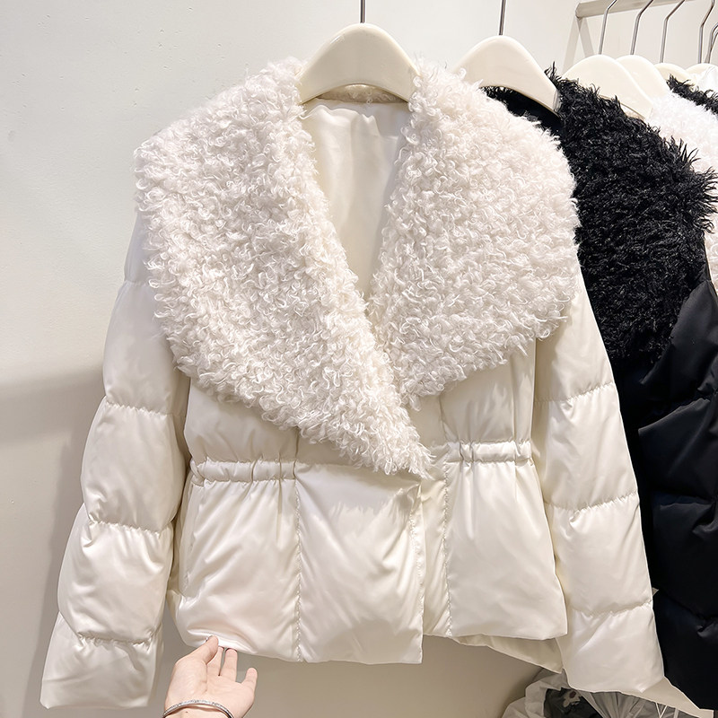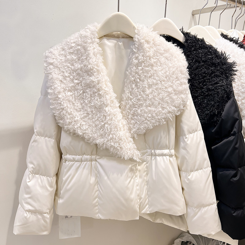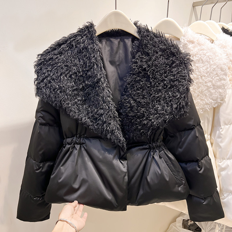 📚 2025新款法式气质毛毛大翻领收腰抽绳加厚短款羽绒服女冬季