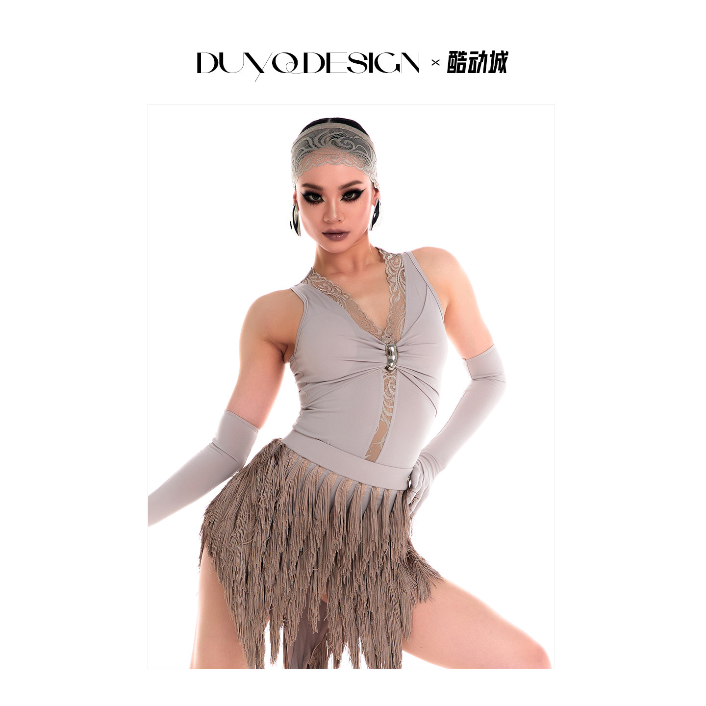 📚 DUYQ《山醒春殇拉丁》001原创蕾丝连体上衣国标女士拉丁舞练功服