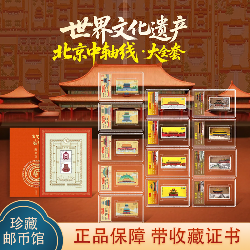 📚 中国邮政发行北京中轴线邮票故宫藏书票珍藏大全套新版带收藏证书