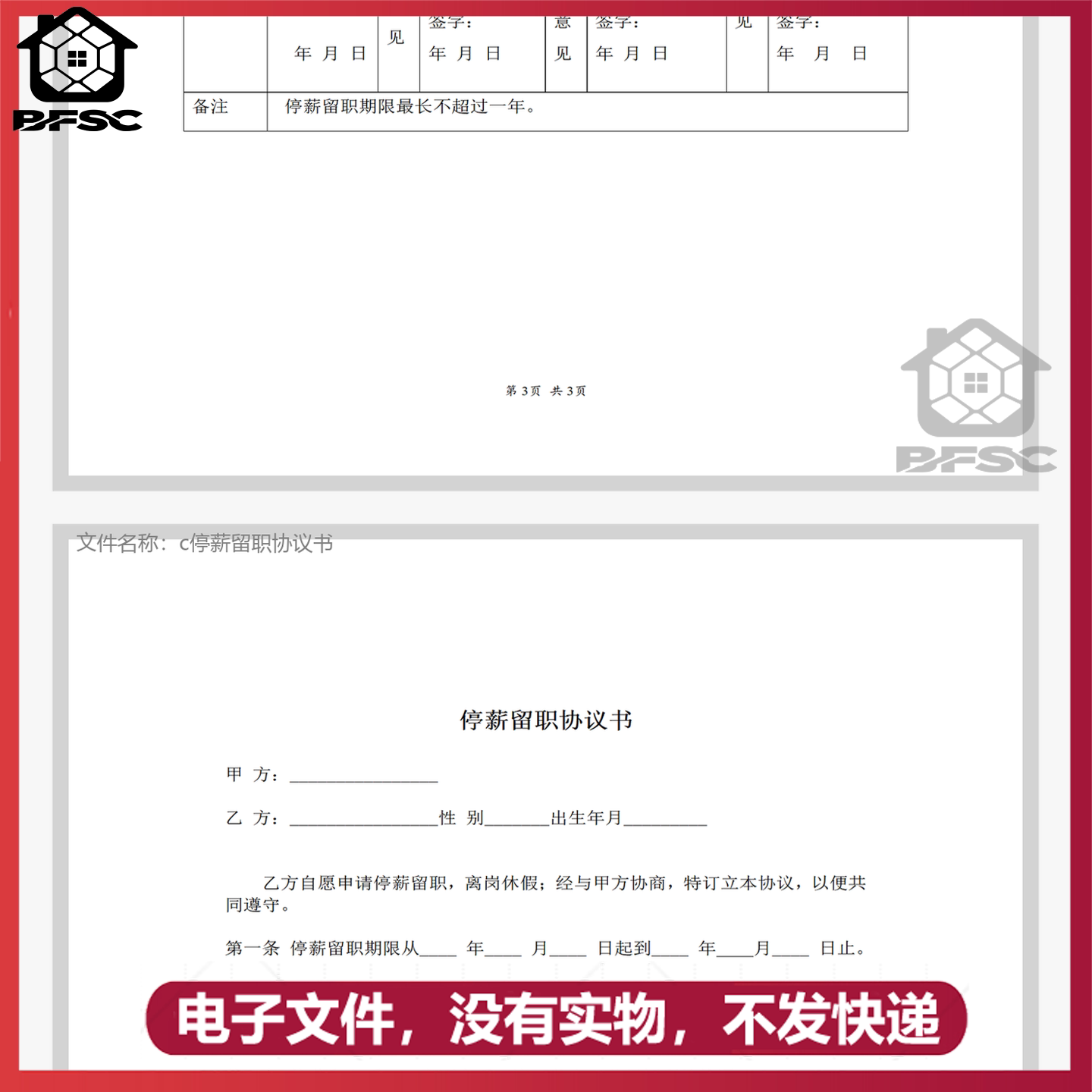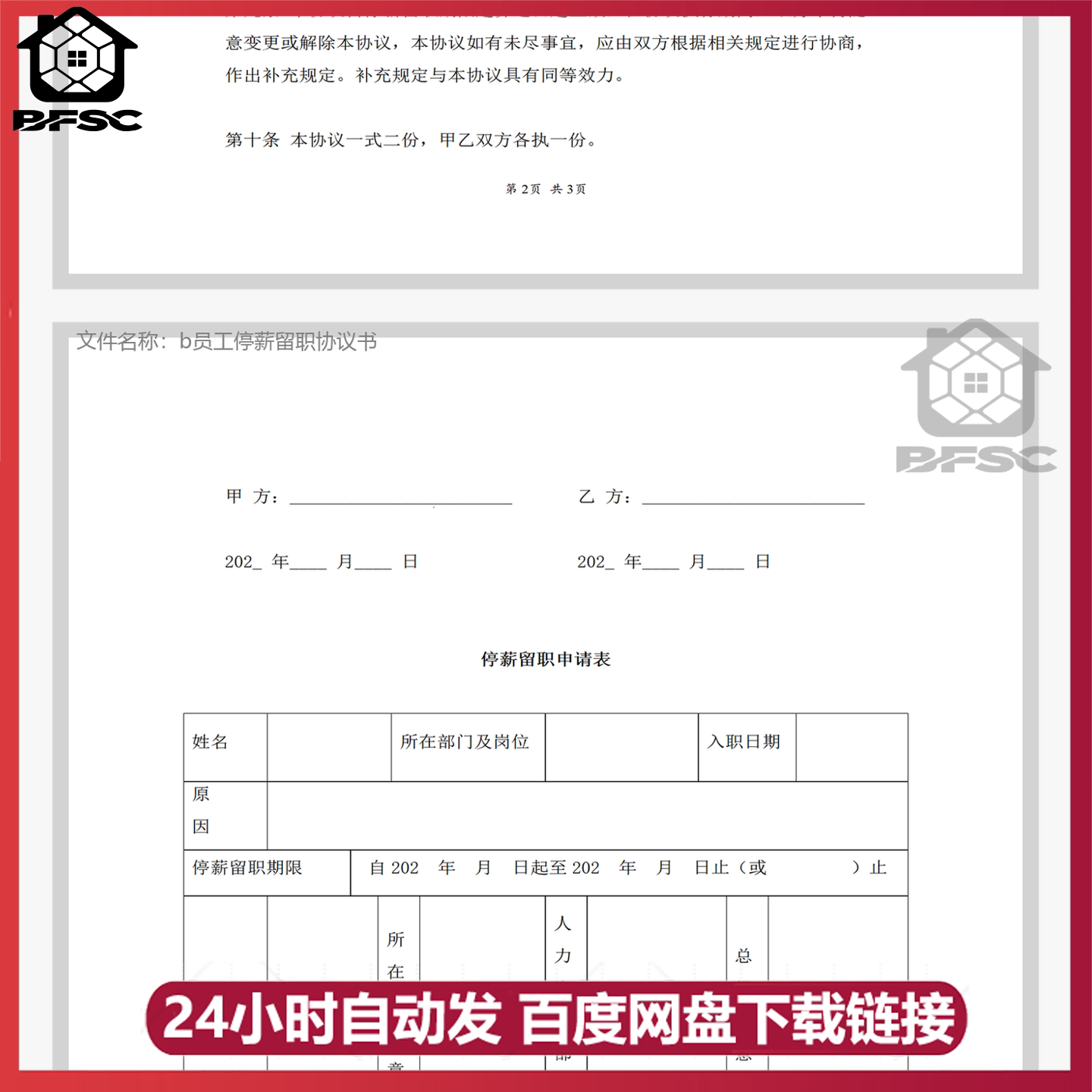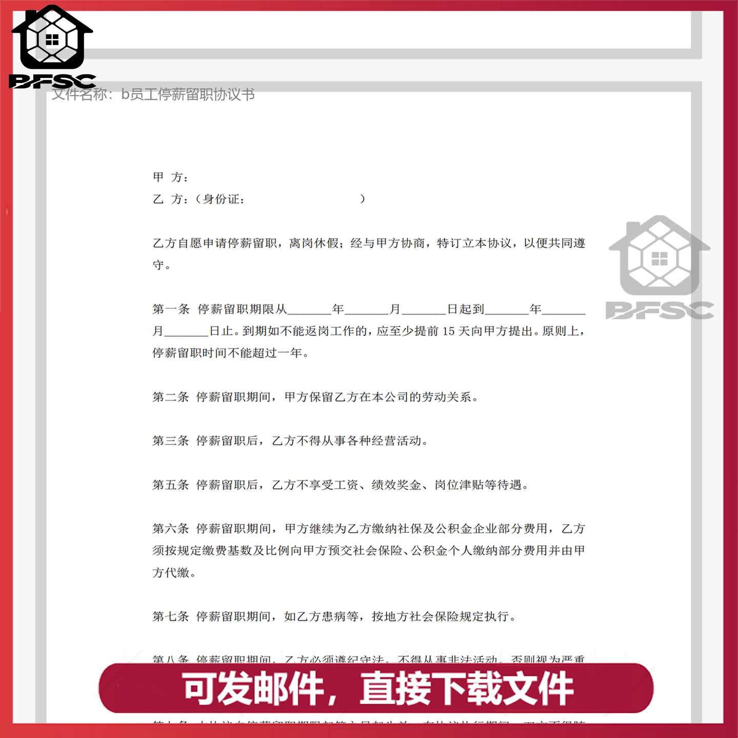 📚 停薪留职协议公司cd员工合同单位职工员工离职申请书范本模板企业