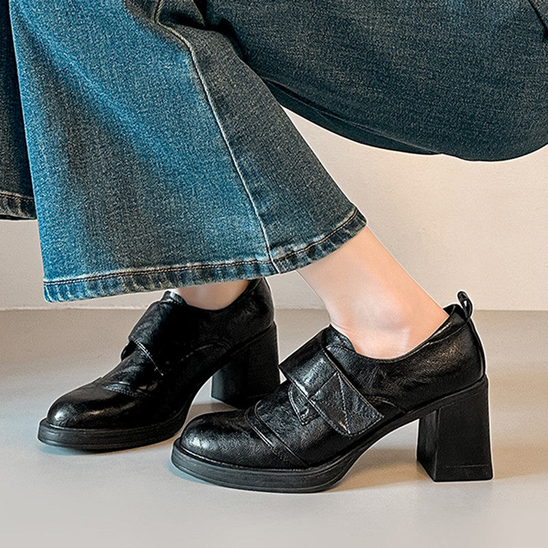 📚 真皮高跟乐福鞋女2026新款巨好看英伦风小个子粗跟单鞋黑色小皮鞋