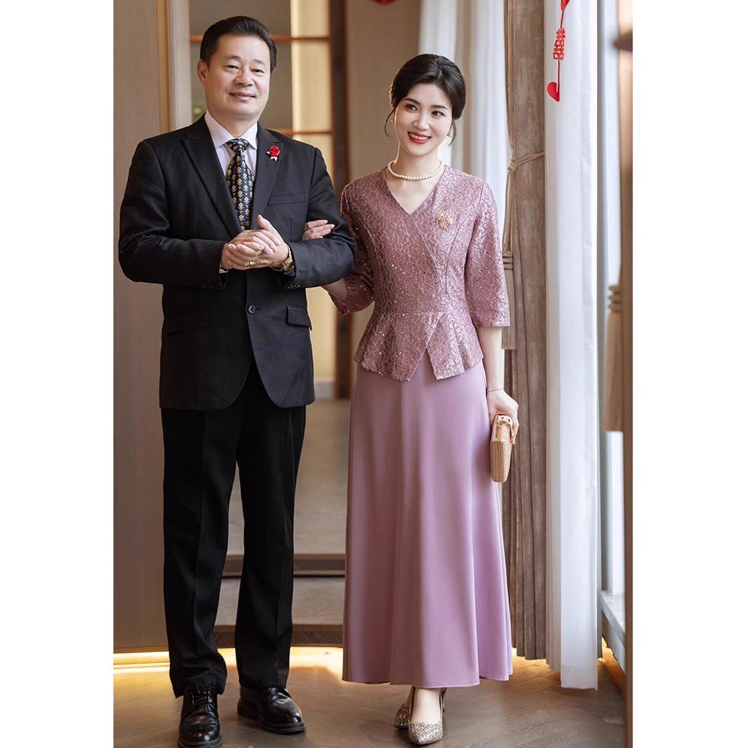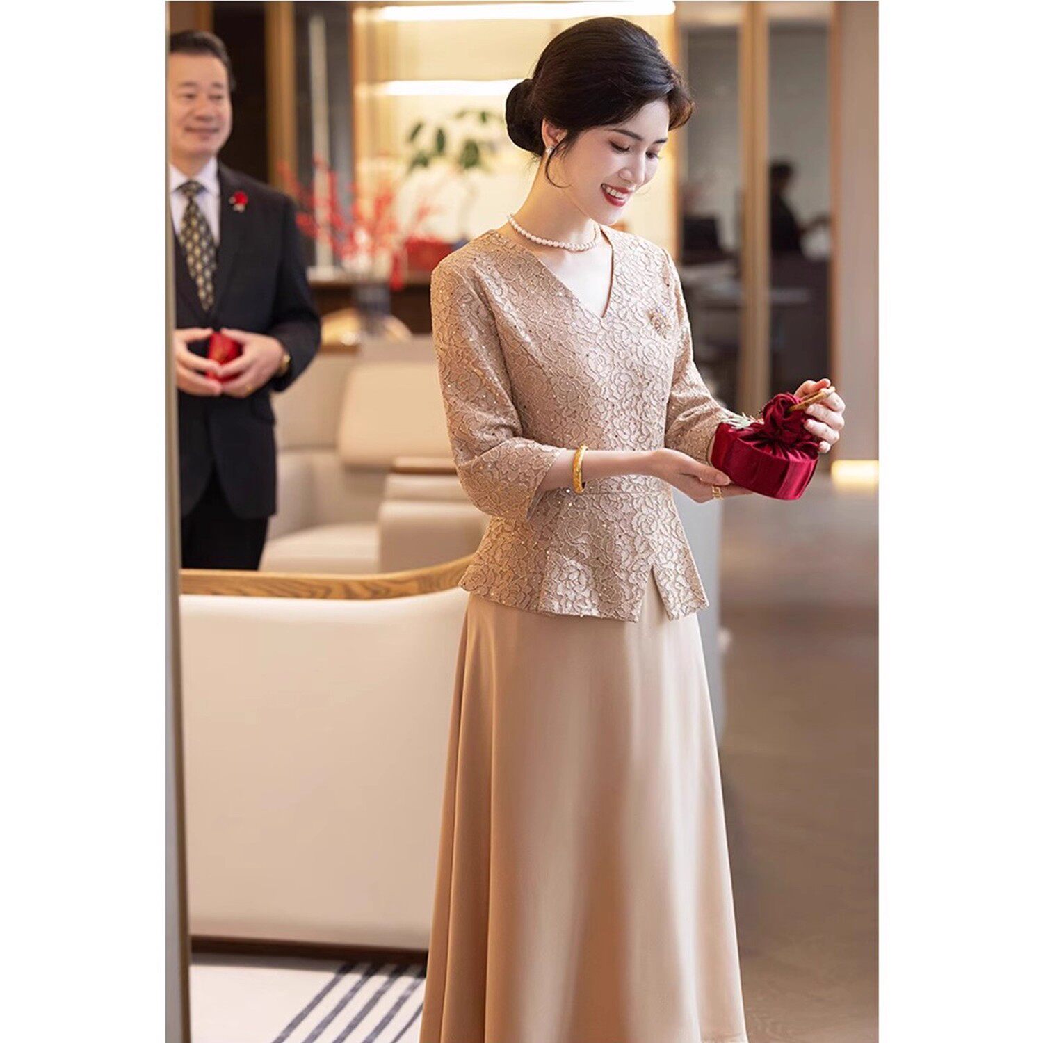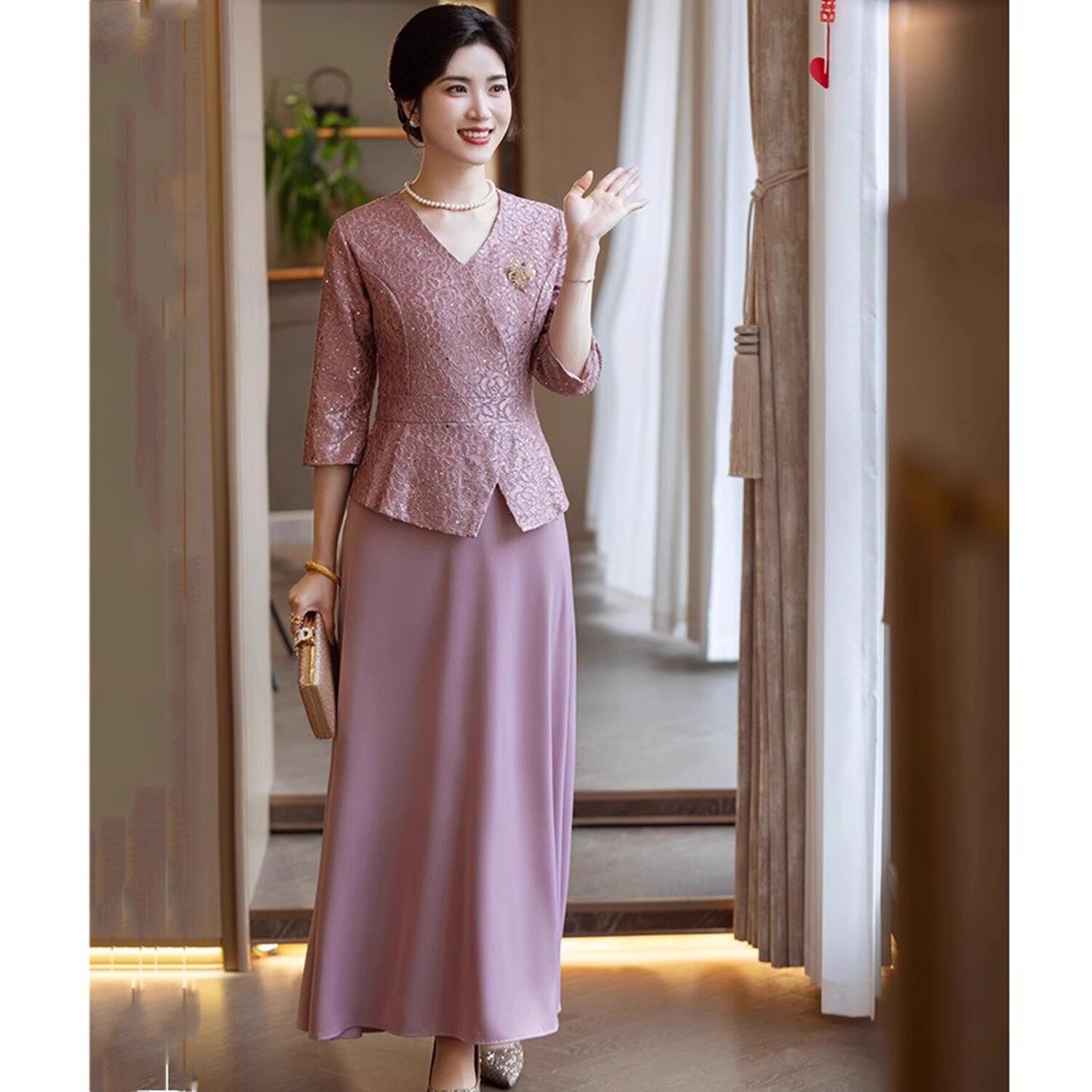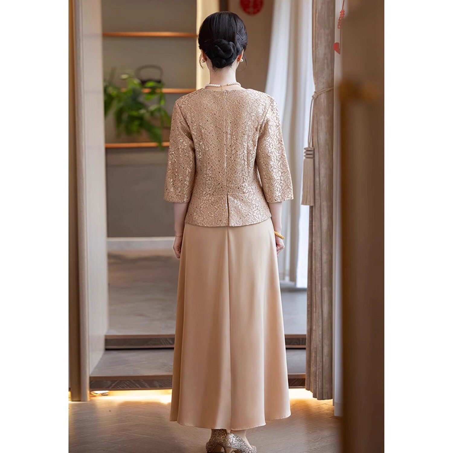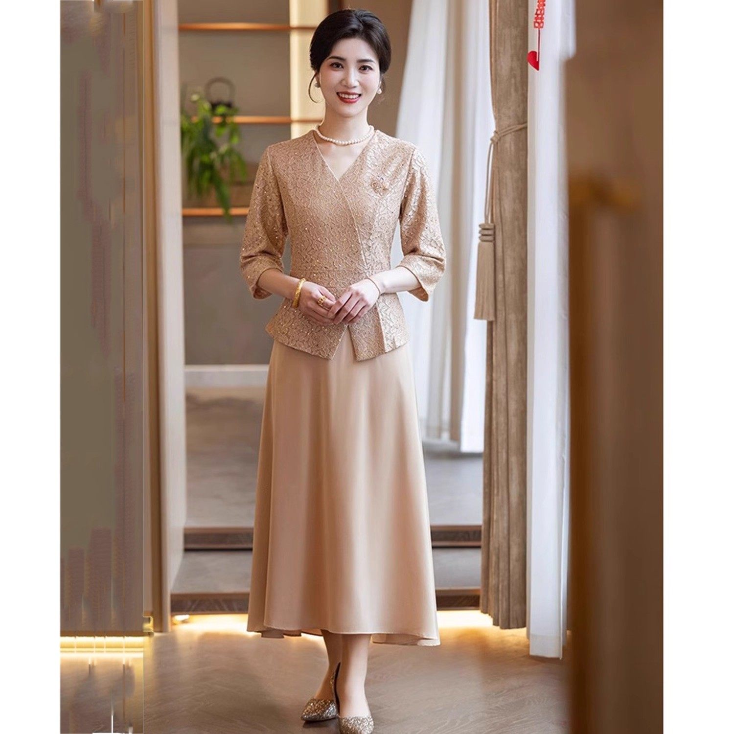 📚 新国风七分袖高档中式裙子喜婆婆参加婚礼洋气连衣裙妈妈婚宴礼服