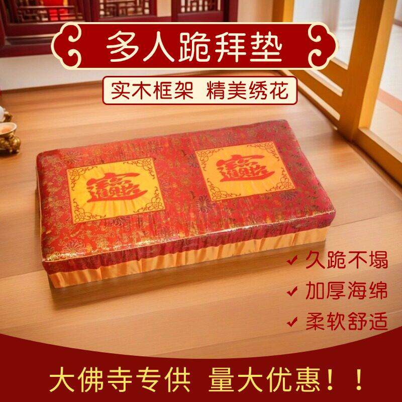 📚 三人位跪垫佛家莲花大拜垫寺庙拜佛垫实木加厚磕头垫上香礼佛拜凳