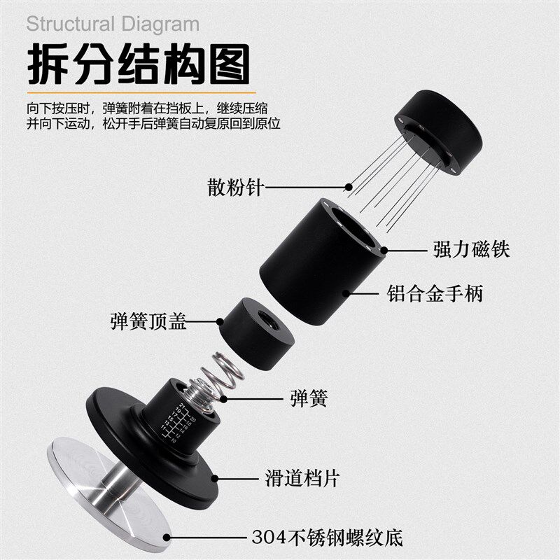 📚 咖啡恒定压力粉锤布粉针二合一51/53/58.35不锈钢螺纹底压粉器