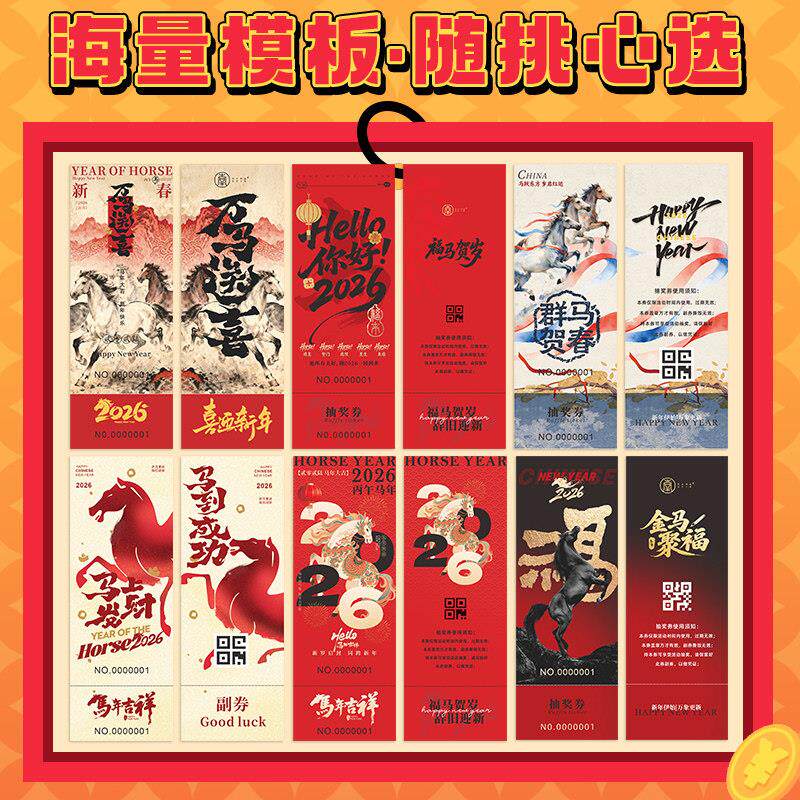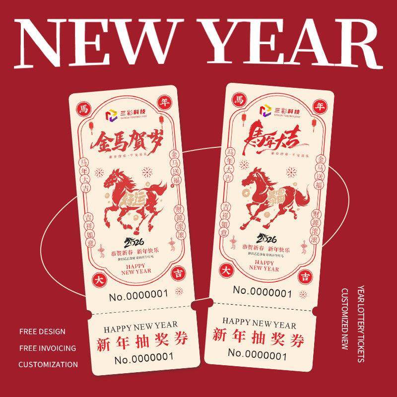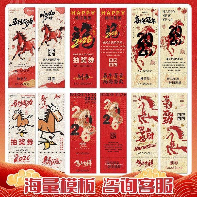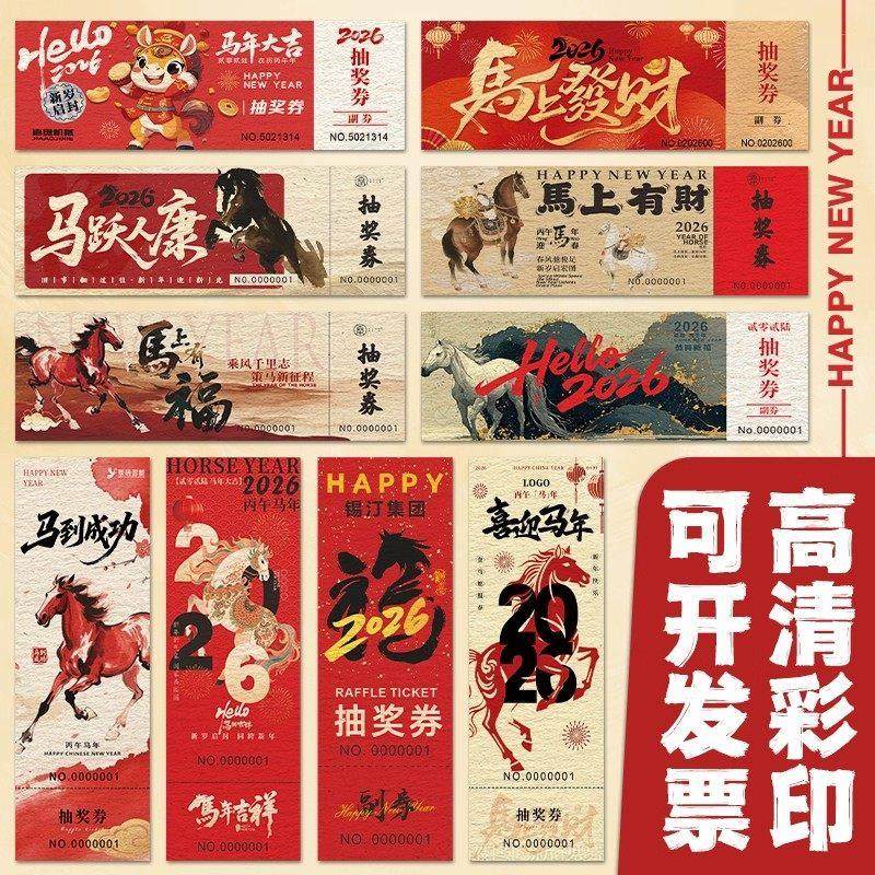 📚 年会抽奖券定制新年撕拉正副券公司logo中奖号码牌设计2026马年卡