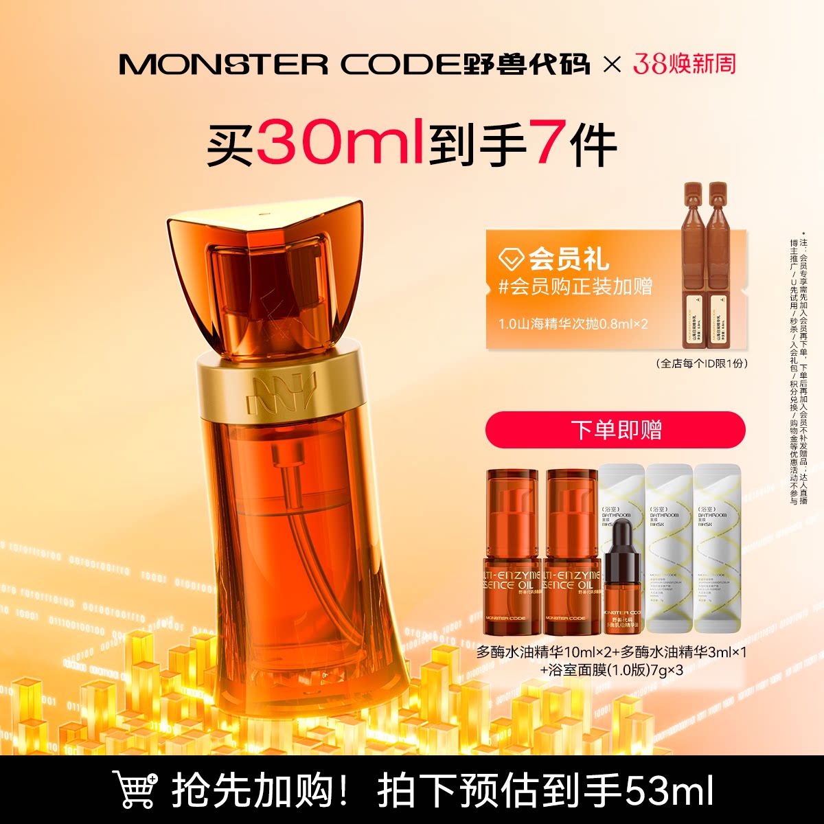 📚 【38焕新周】野兽代码多酶水油精华 紧致抗皱抗初老提亮去黄