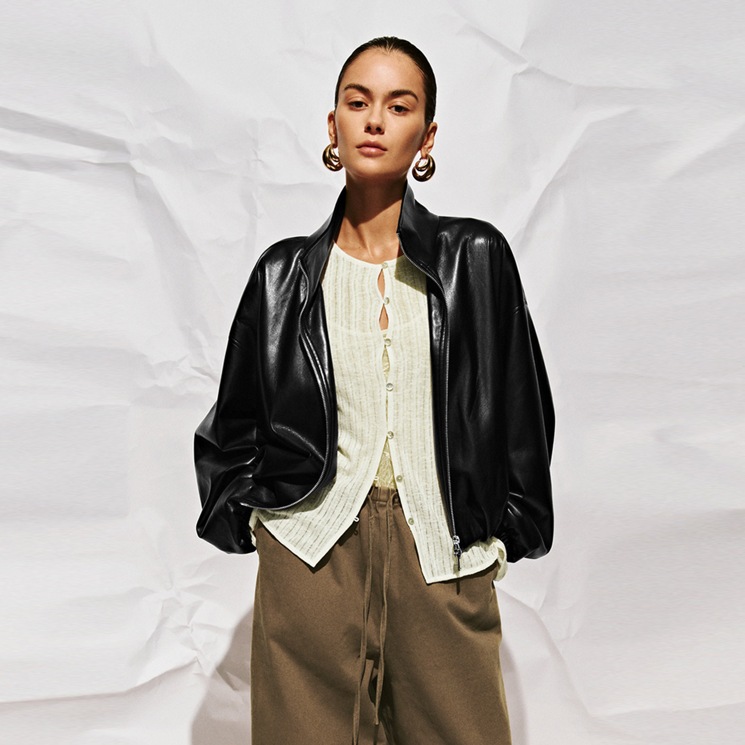 68¥ HU926 DRRUUtXpgku¥ https://m.tb.cn/h.icX1kZa UR国内代购2025冬季女装流光风皮质立领短款超宽松外套UWU150018 --------------------- 【原售价】599元 【现售价】409元。