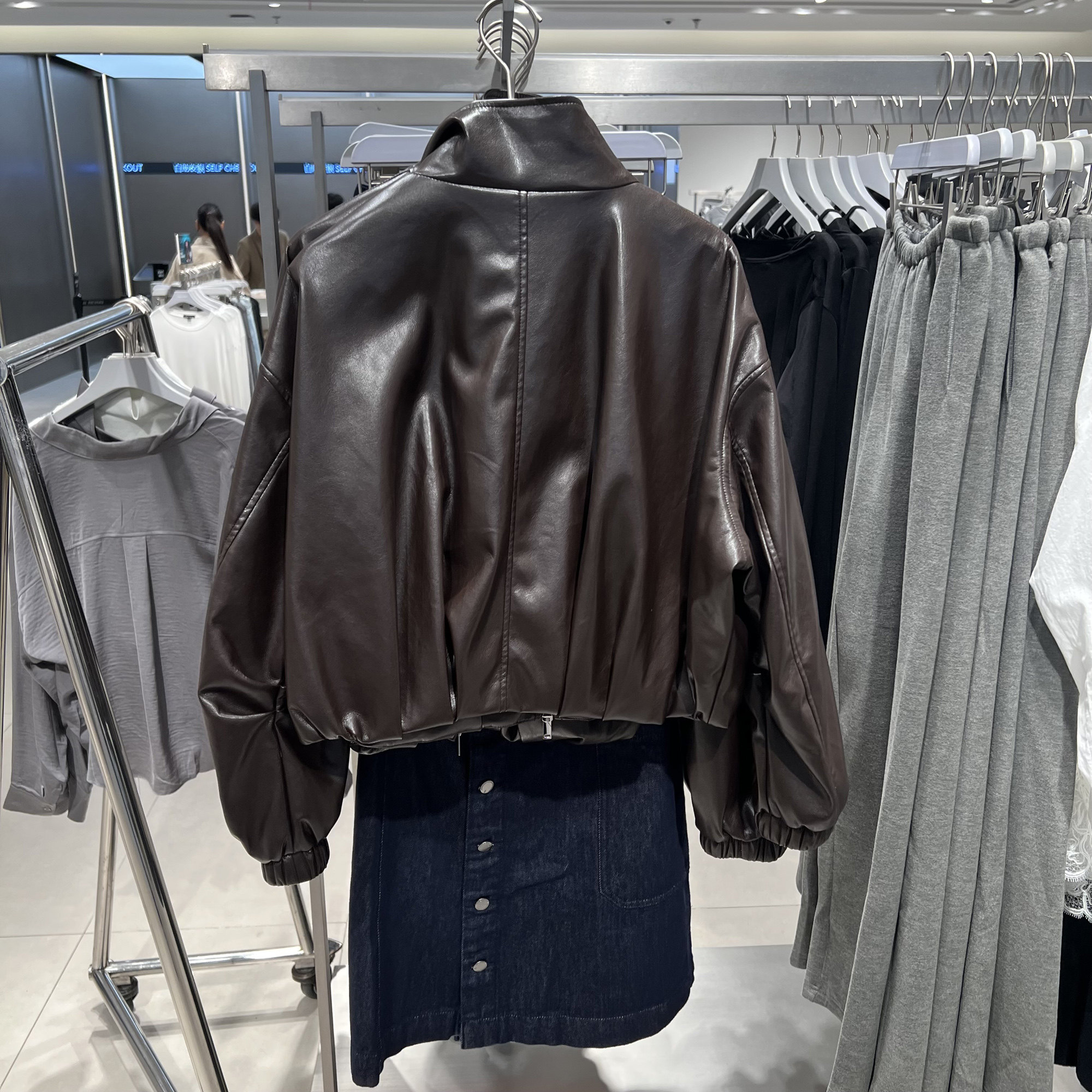 📚 UR国内代购2025冬季女装流光风皮质立领短款超宽松外套UWU150018