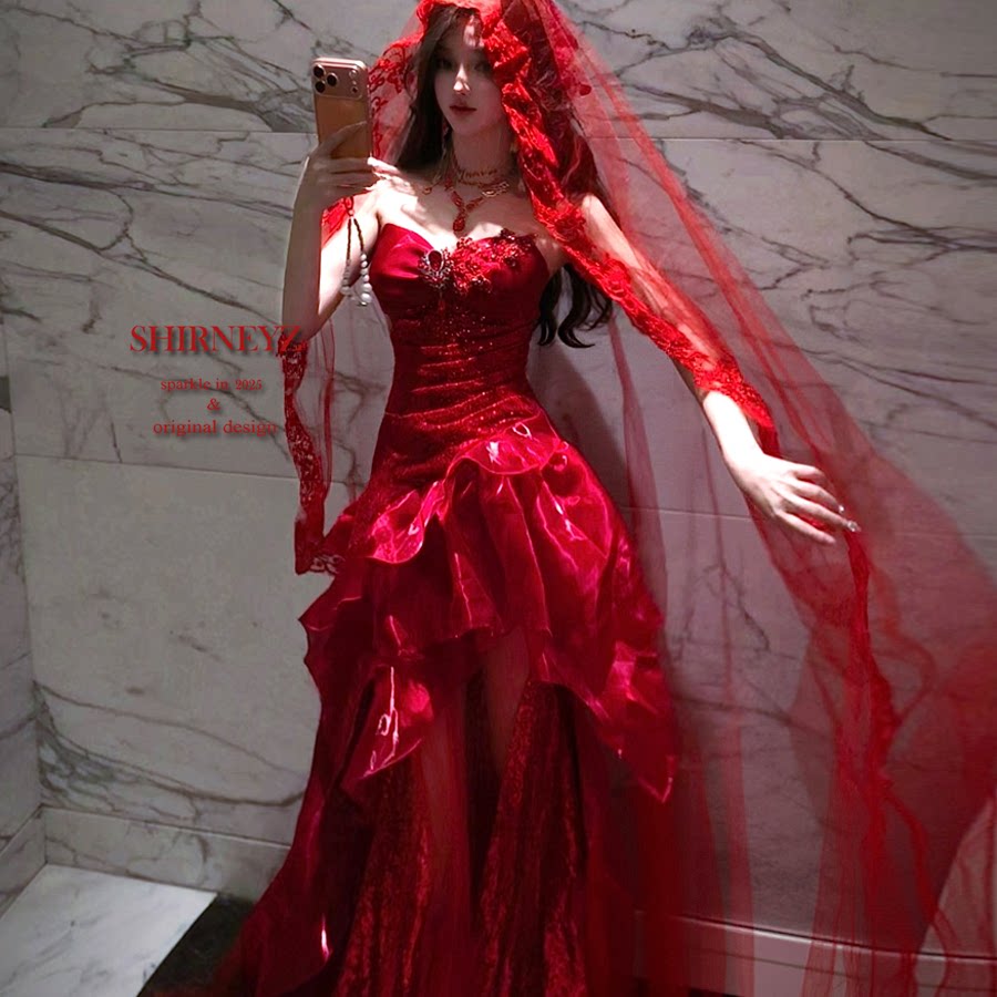 📚 雪妮原创〈绯夜血宴〉不规则设计感连衣裙红色裙子连身裙新年战袍