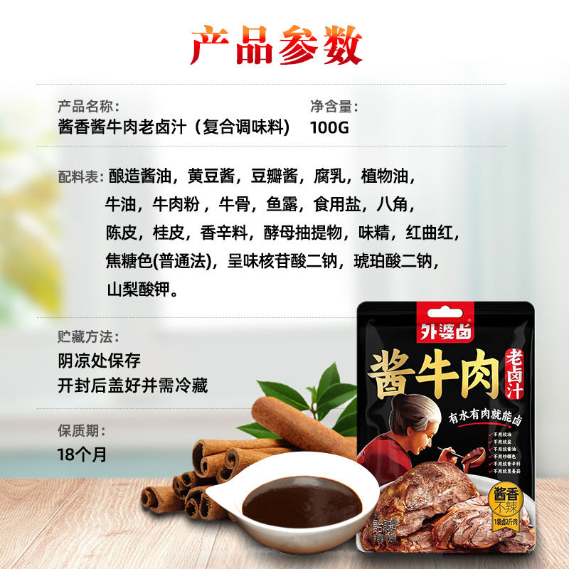📚 外婆卤卤肉卤水料包秘制正宗酱牛肉东北酱大骨炖肉酱牛肉卤汁100g
