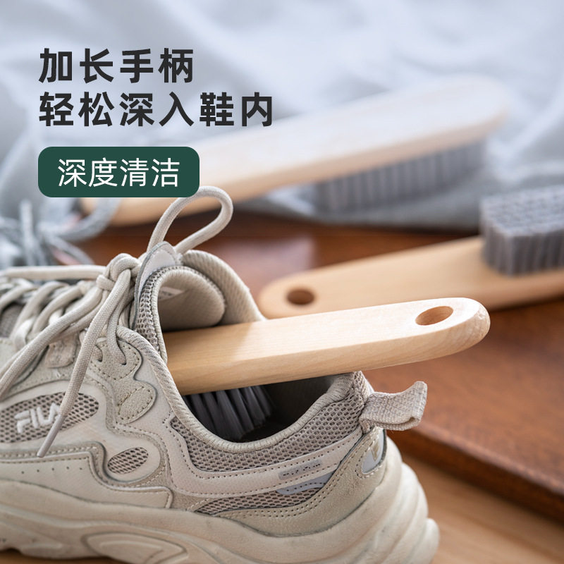 📚 实木软毛洗鞋刷子强力去污洗衣刷原木柄鞋刷PBT刷毛荷木软毛鞋刷