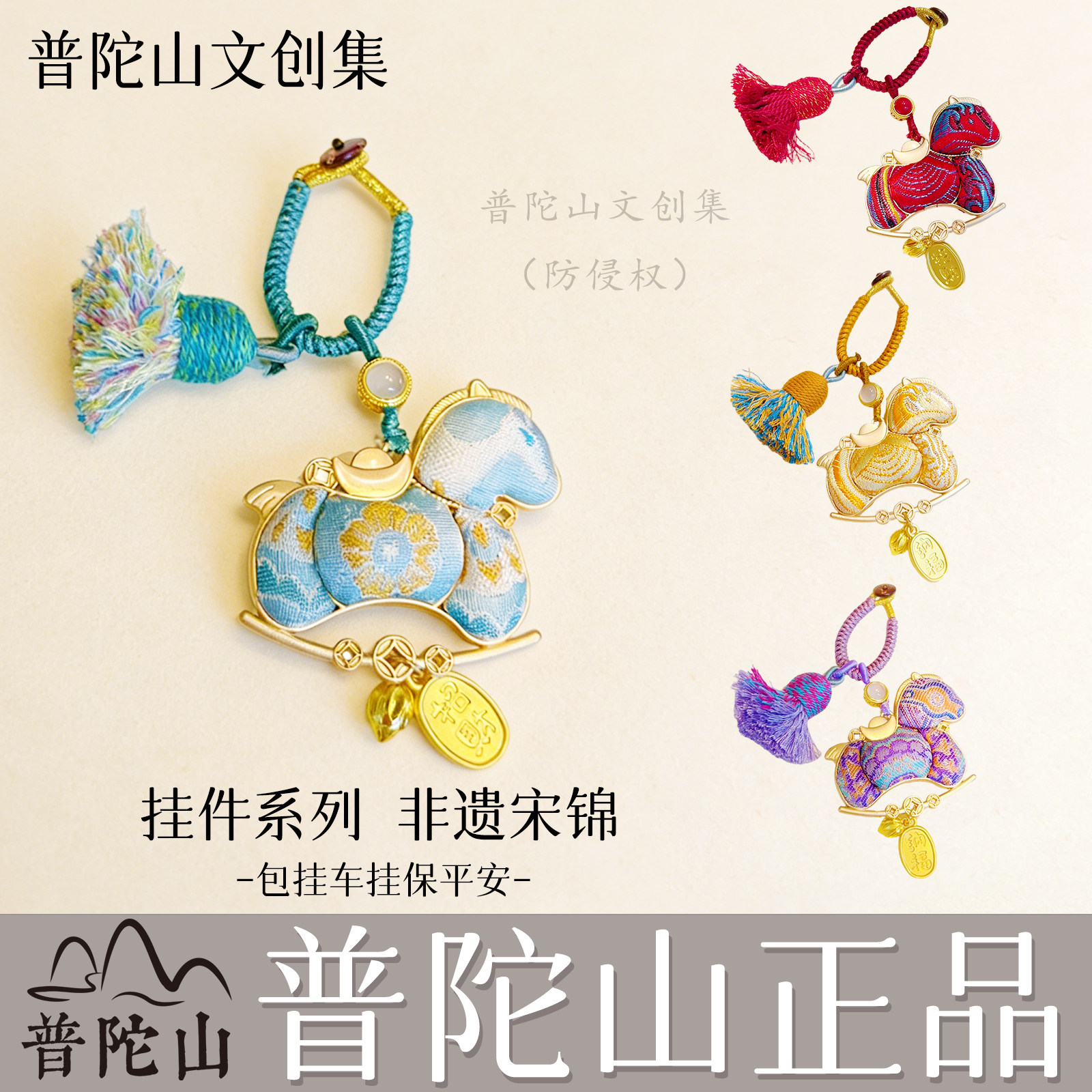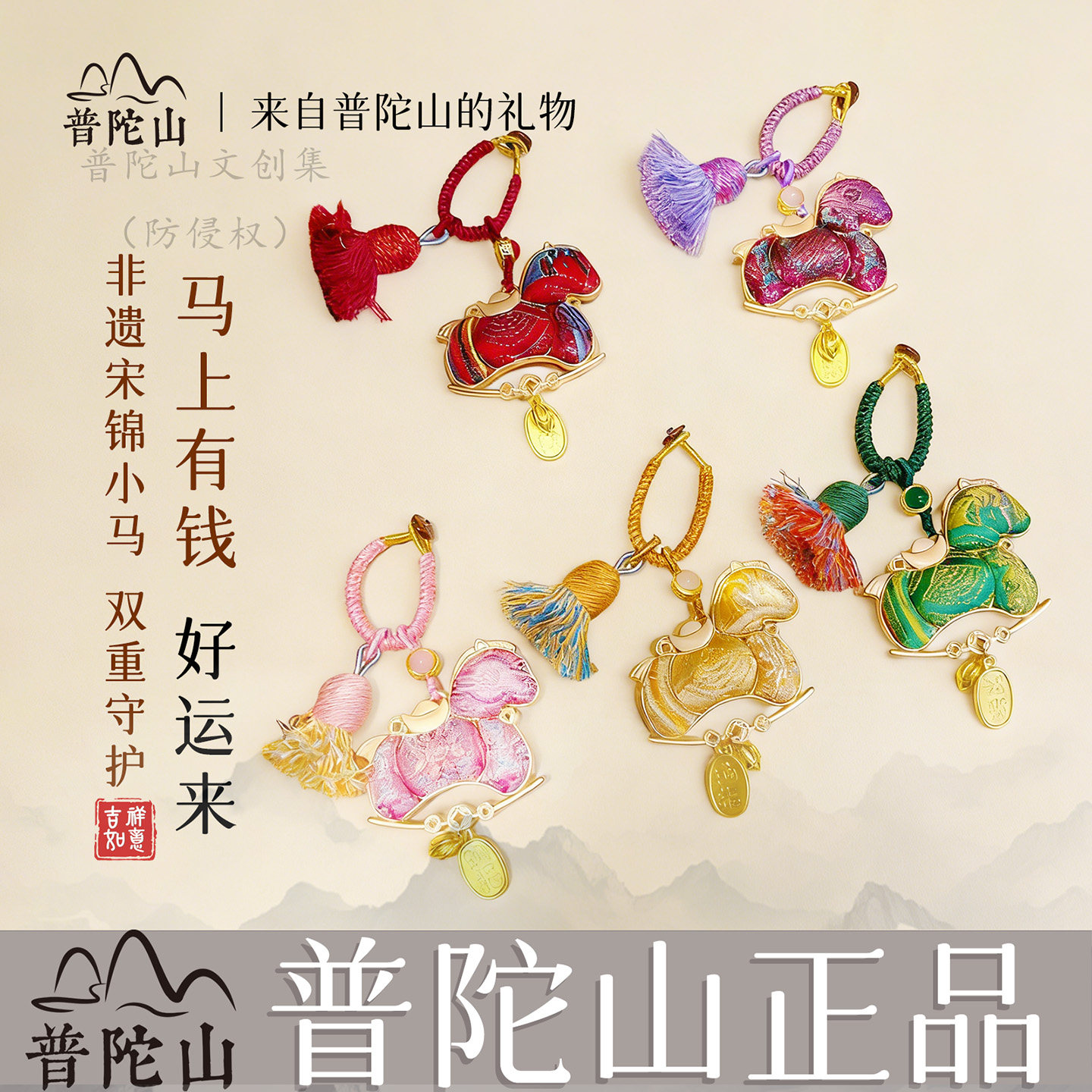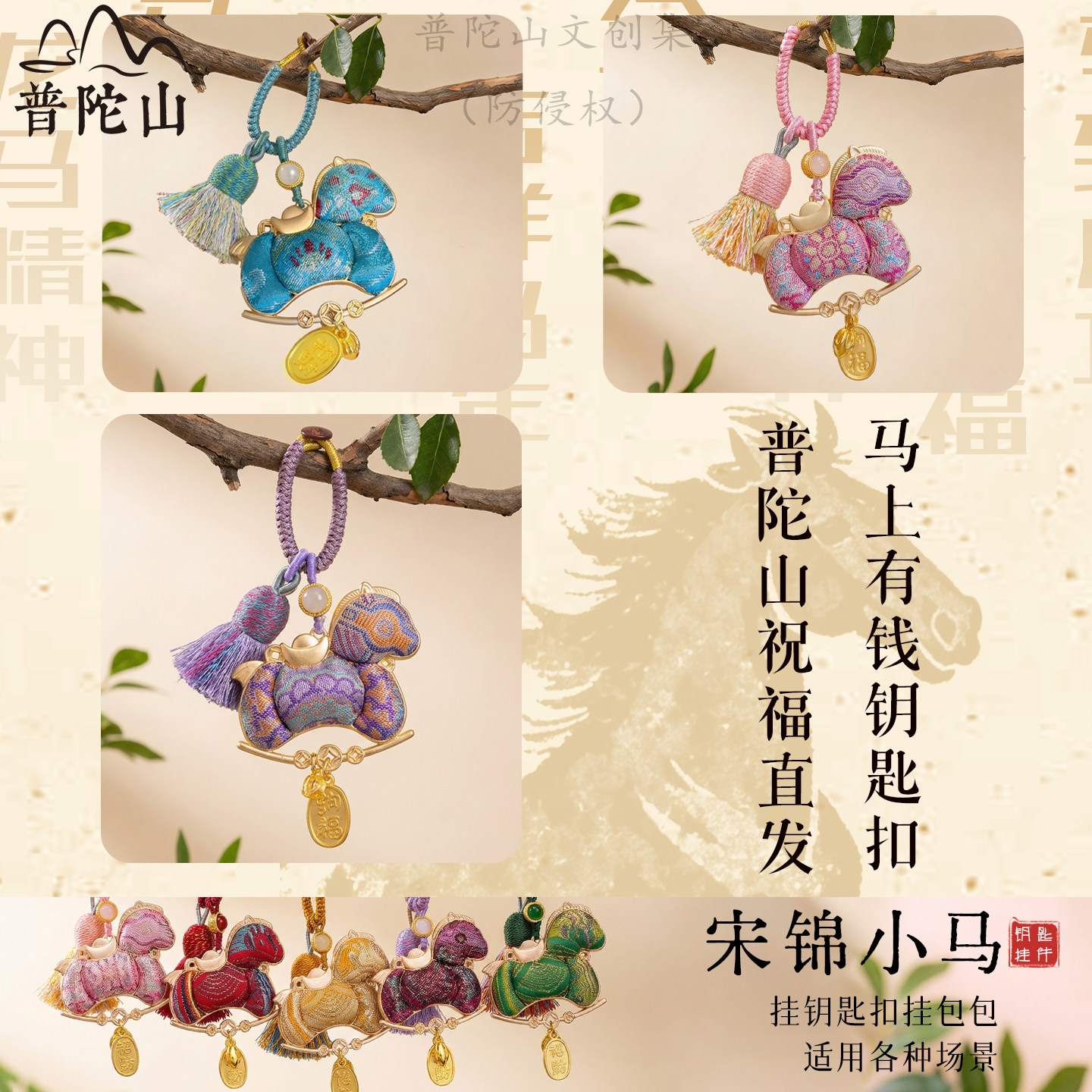 📚 普陀山文创集马上有钱宋锦小马挂件钥匙扣马年包包挂饰纯手工非遗