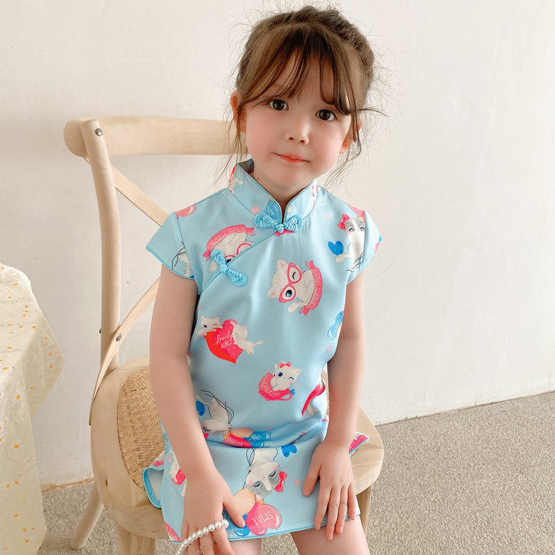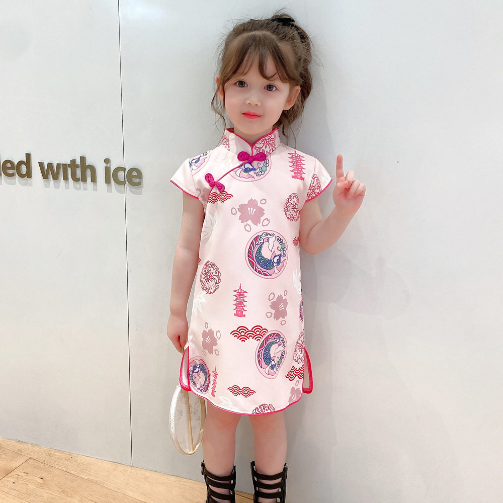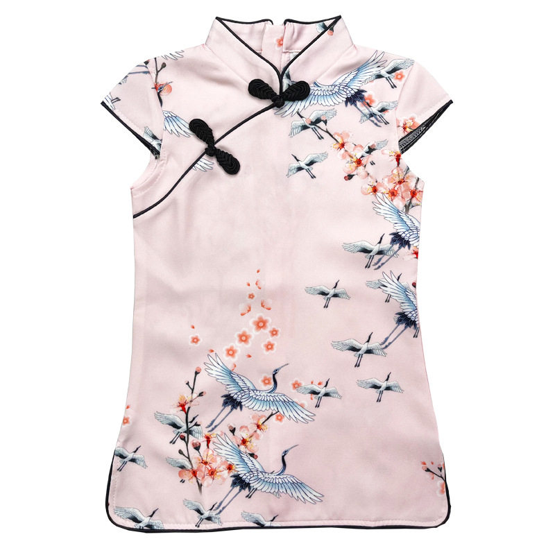 📚 女童粉色仙鹤旗袍宝宝古装汉服连衣裙洋气中国风女孩改良25夏新款