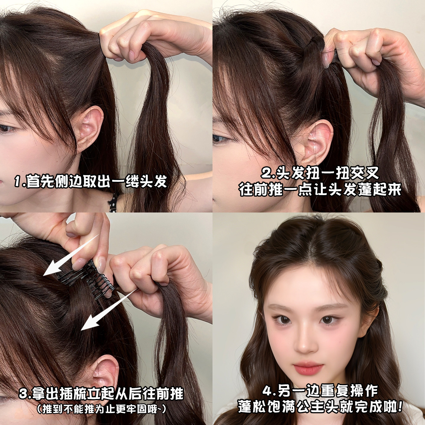 📚 成人碎发整理神器黑色隐形倒插梳发卡子公主头发梳刘海夹盘发头饰