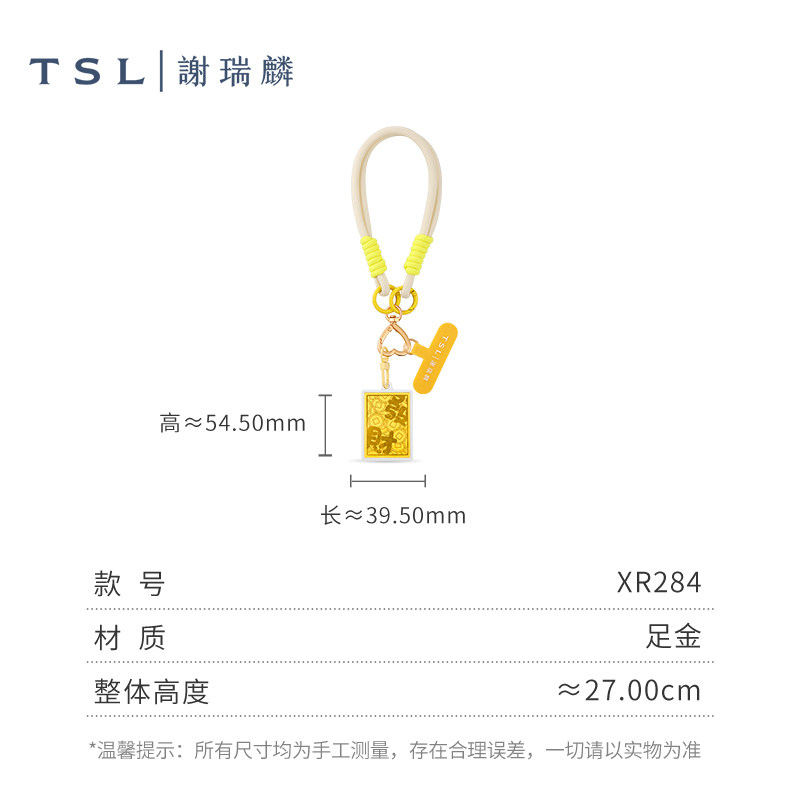 📚 【折扣】TSL谢瑞麟黄金发财金片5D硬金短款手机挂绳足金挂件XR284