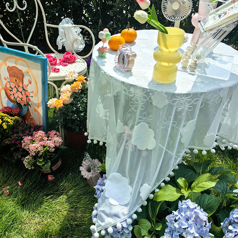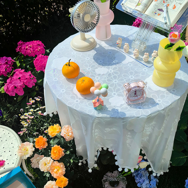 📚 桌布学生课桌少女心啊奶油风桌垫毛球花边生日布置防猫毛盖布遮丑