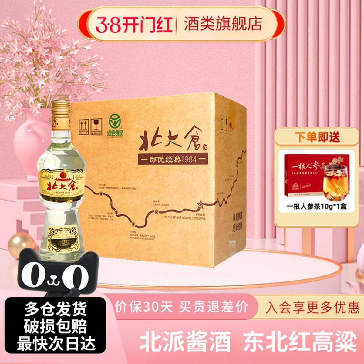 📚 【绿色食品】北大仓大部优经典纯粮酱香型白酒整箱装50度630ml6瓶
