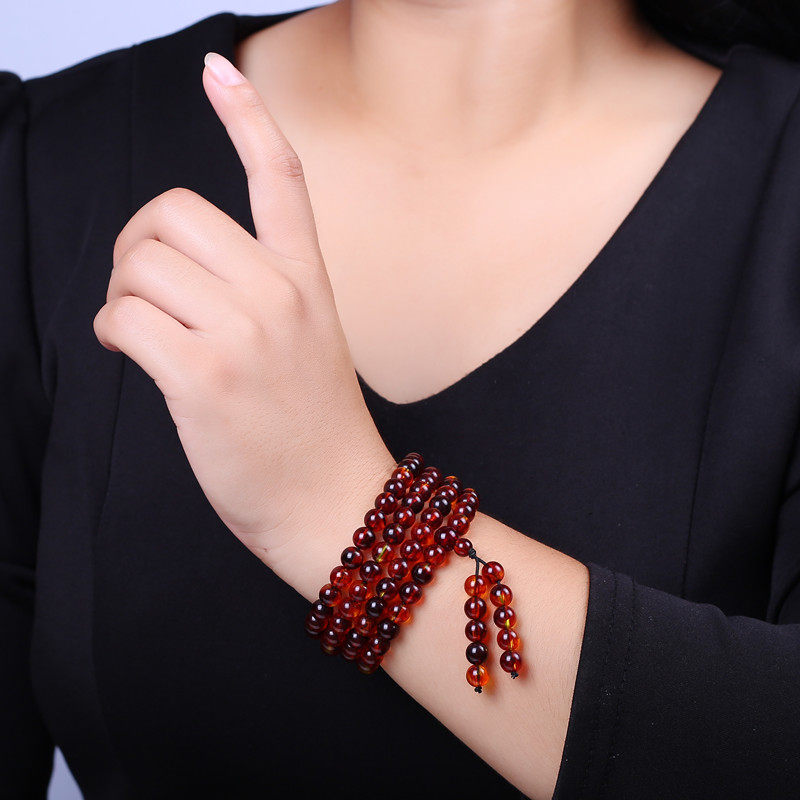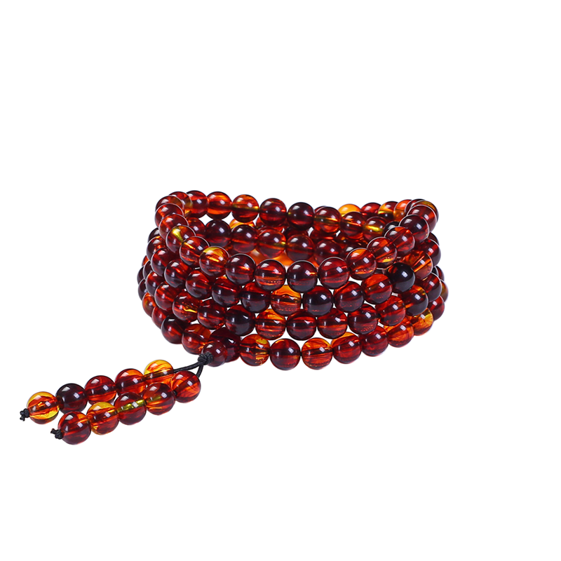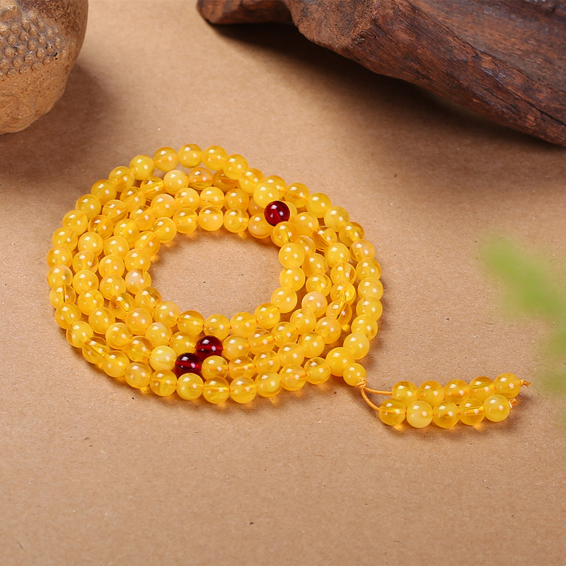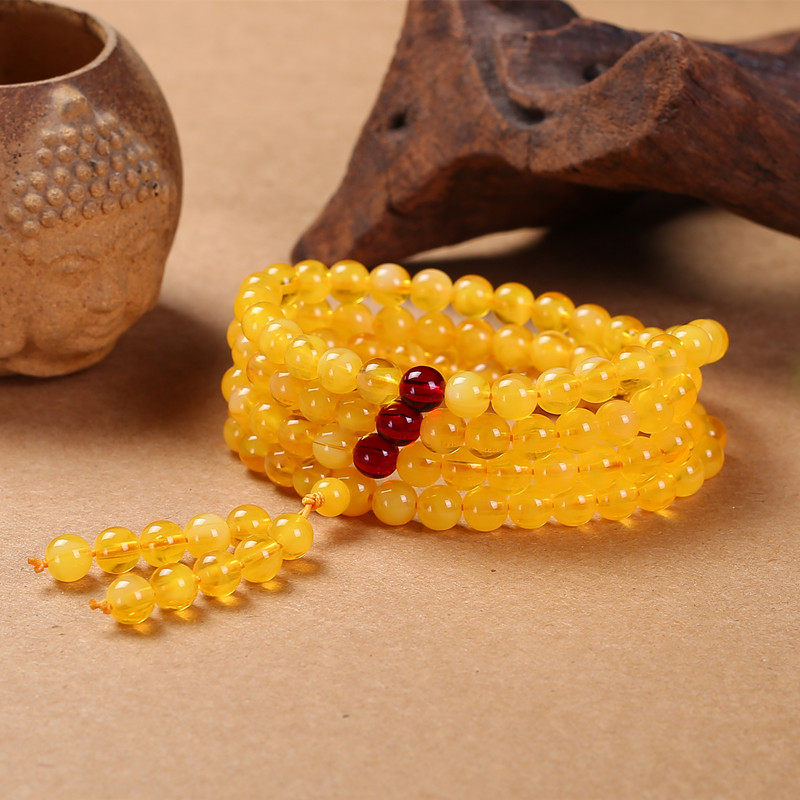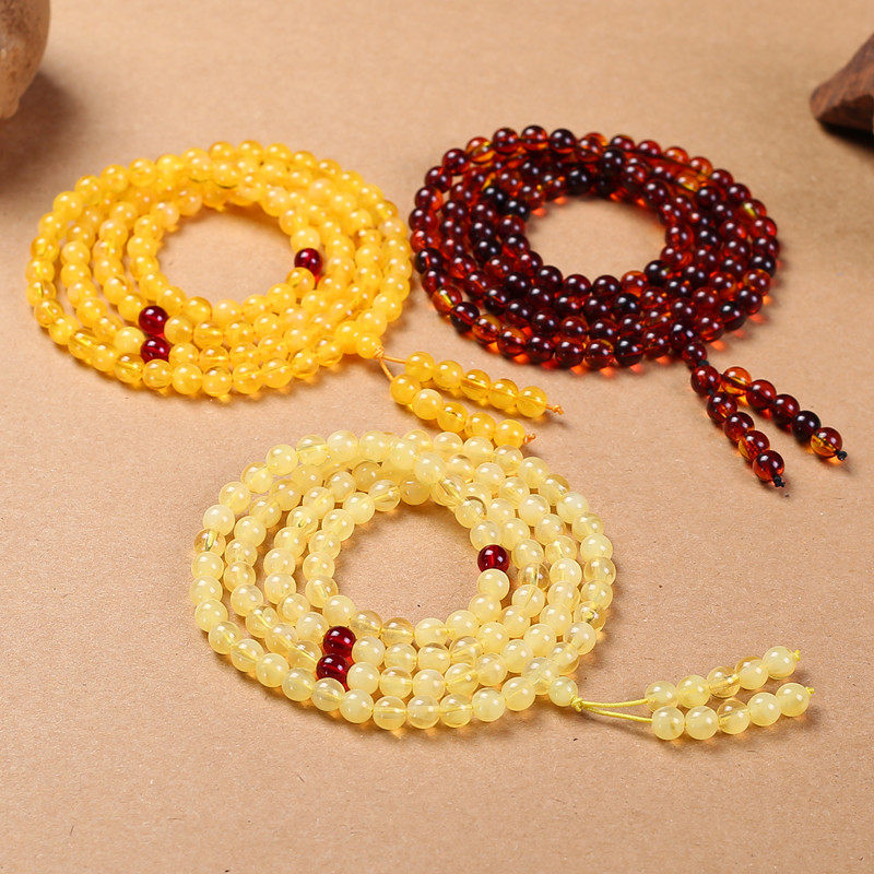 📚 金绞蜜血丝珀珍珠蜜蜜蜡108颗佛珠手链6/8mm琥珀4圈多层手串项链