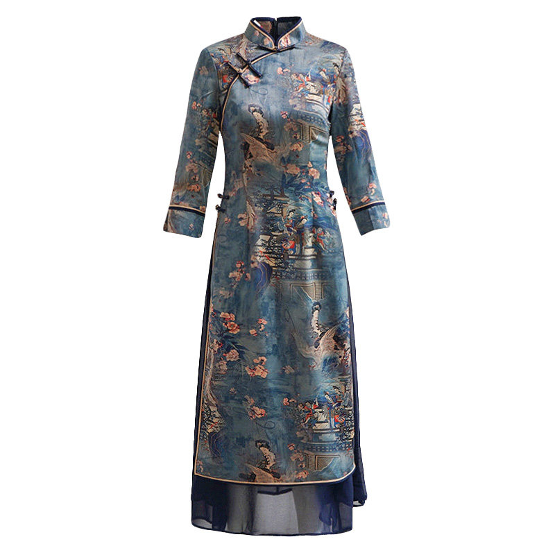 📚 如意风越南旗袍裙改良奥黛连衣裙春秋长袖修身气质复古时尚长裙