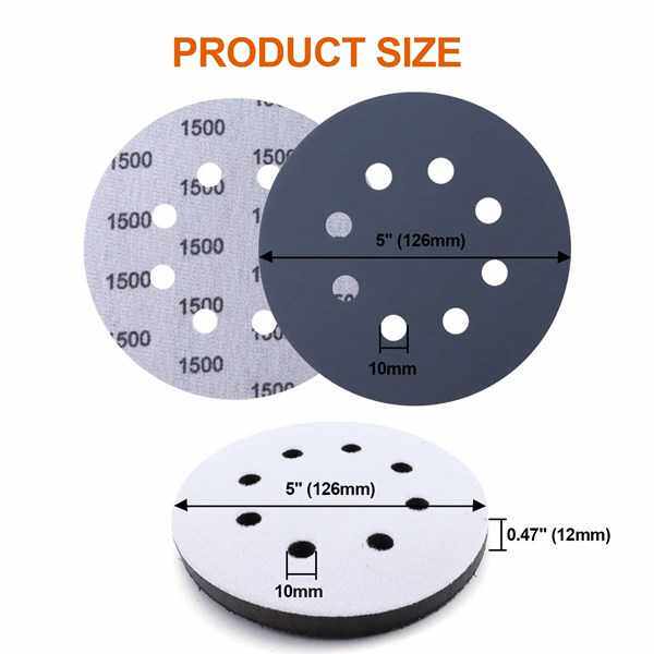 📚 120张偏软海绵缓冲垫 5寸8孔自粘背绒砂纸适用弧面打磨缓冲垫
