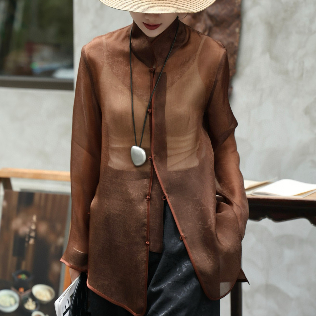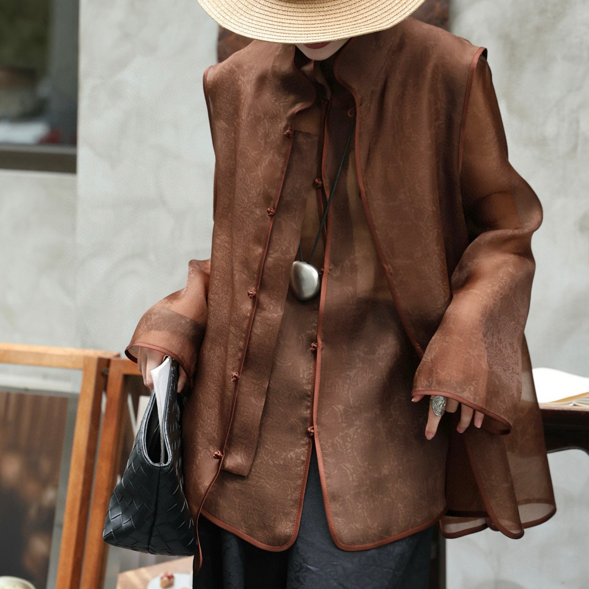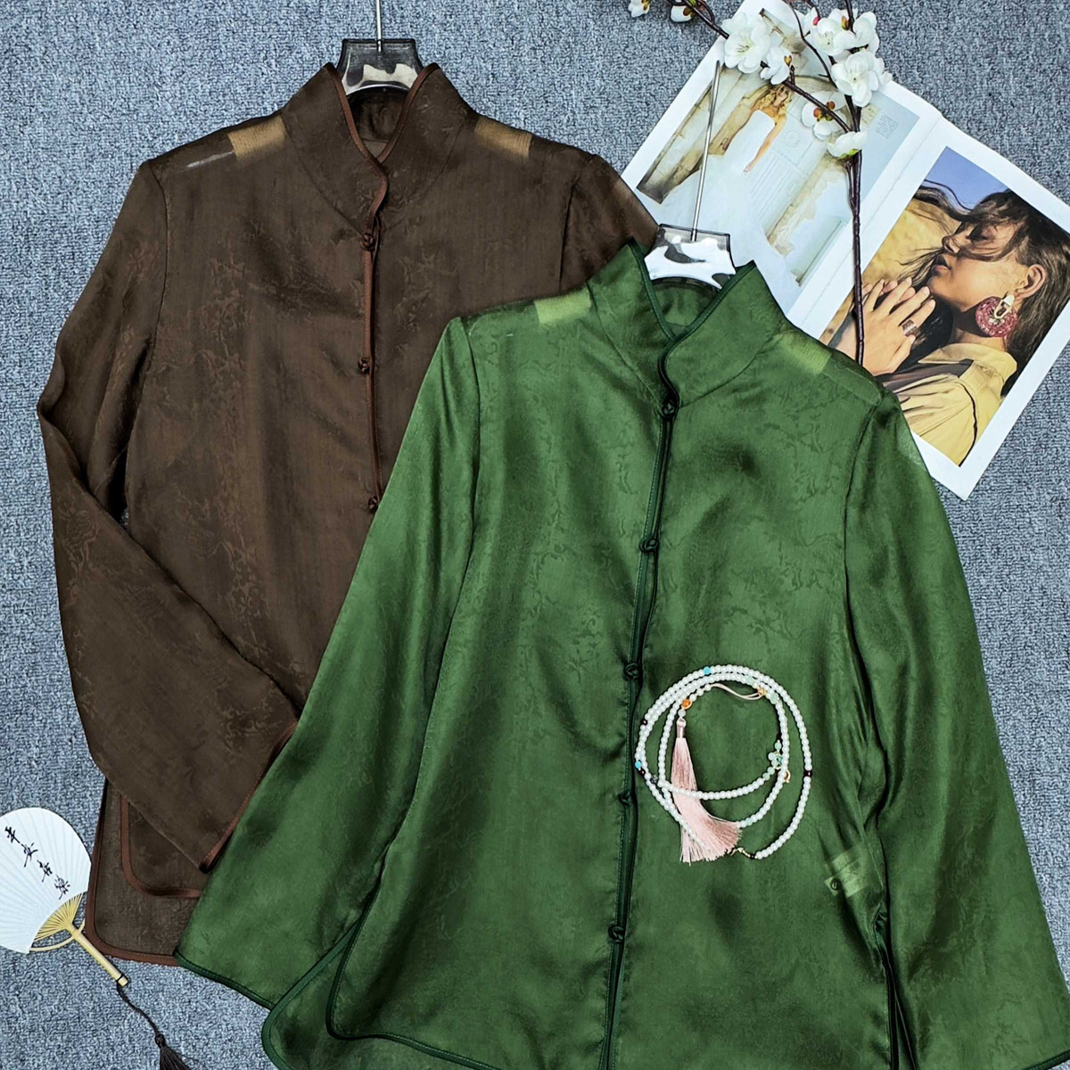 📚 26年新款极简大牌老钱新中式桑蚕丝欧根缎提花衬衫国风小衫衬衣