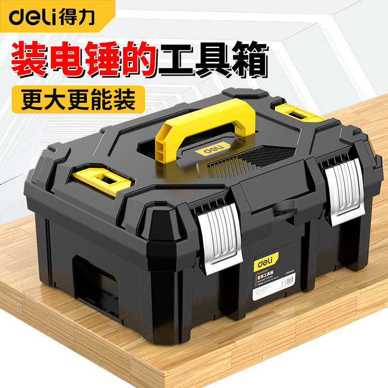 📚 得力宽体工具箱大容量工业级电工收纳盒手提大号车载可平放冲击钻