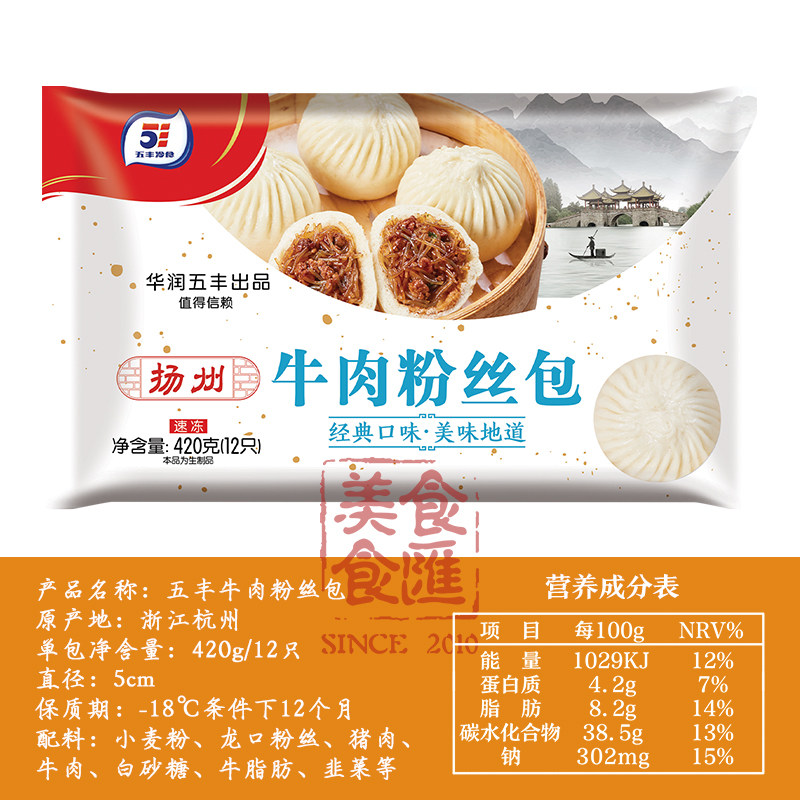📚 五丰冷食牛肉粉丝包3包手工面点冷冻蒸笼半成品酒店商用早餐速食