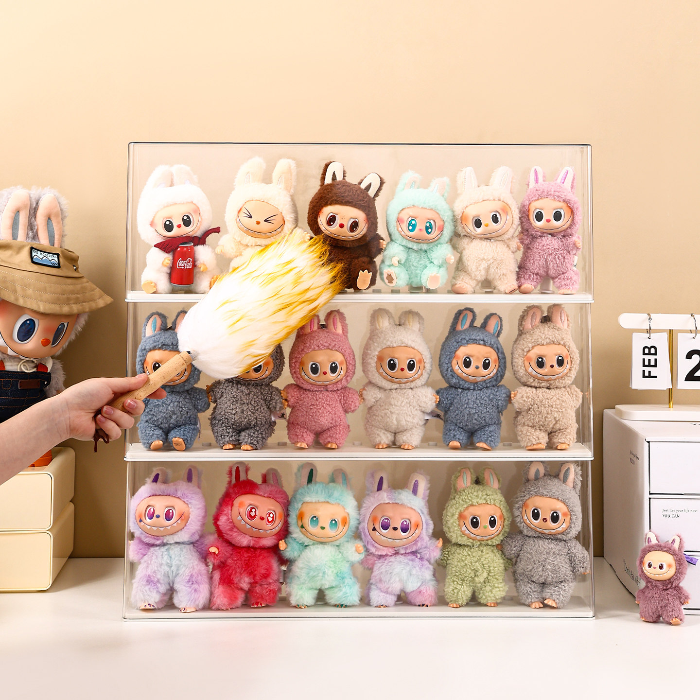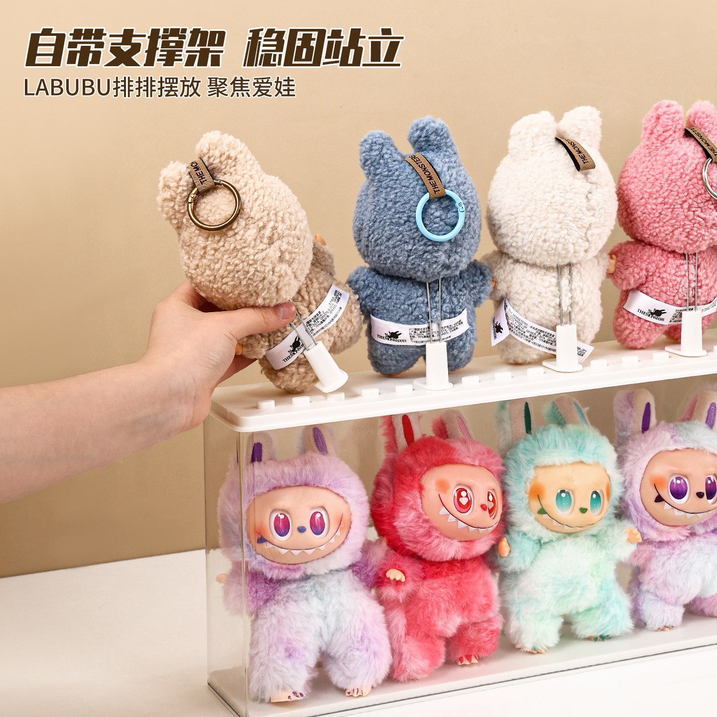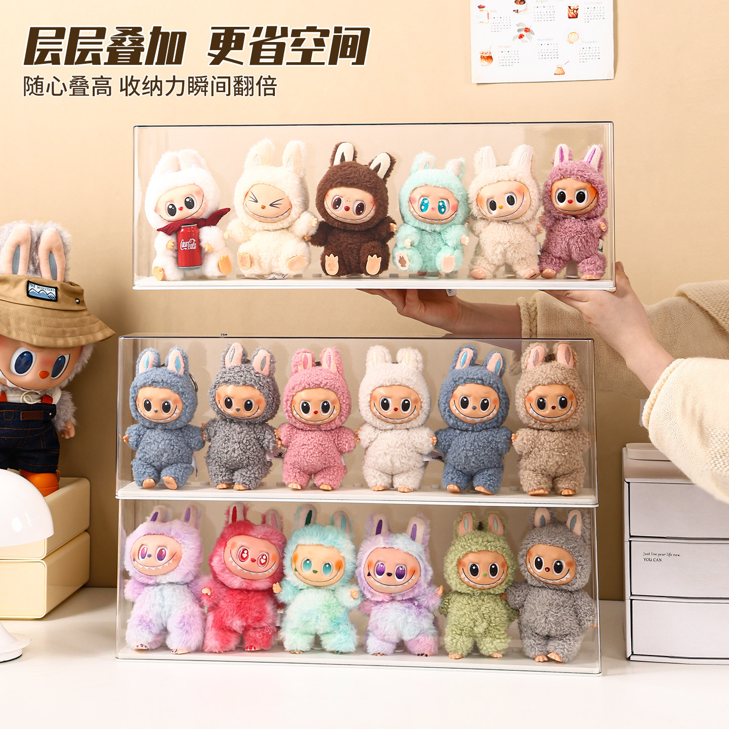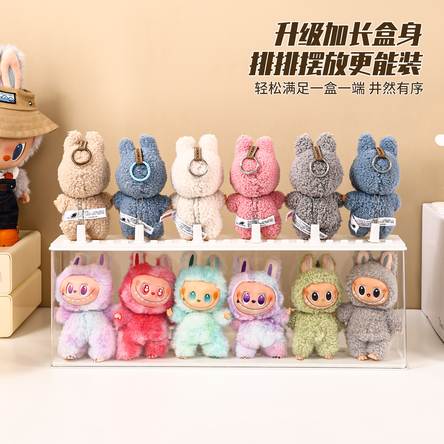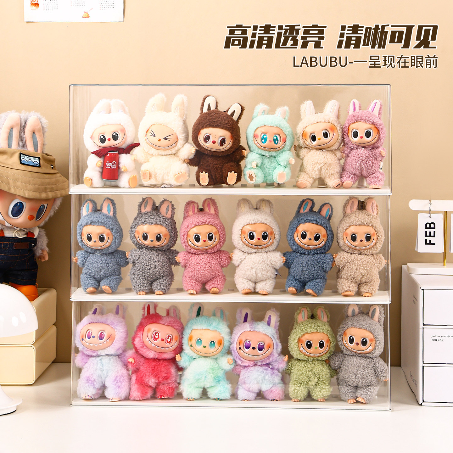 📚 labubu展示盒防尘dimoo搪胶娃毛绒挂件保护罩透明盲盒收纳展示架