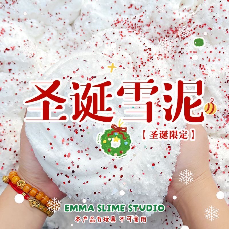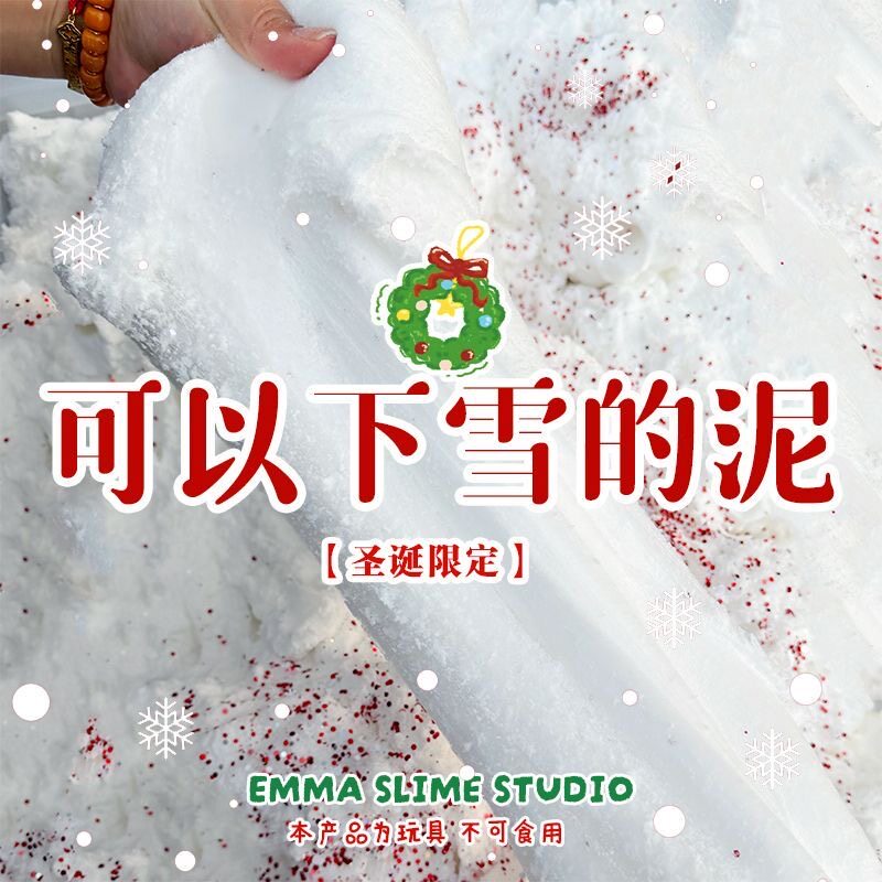 📚 EMMA家圣诞雪泥水变雪白胶千丝泥史莱姆蚕丝泥起泡胶解压玩具泥巴