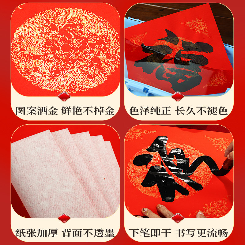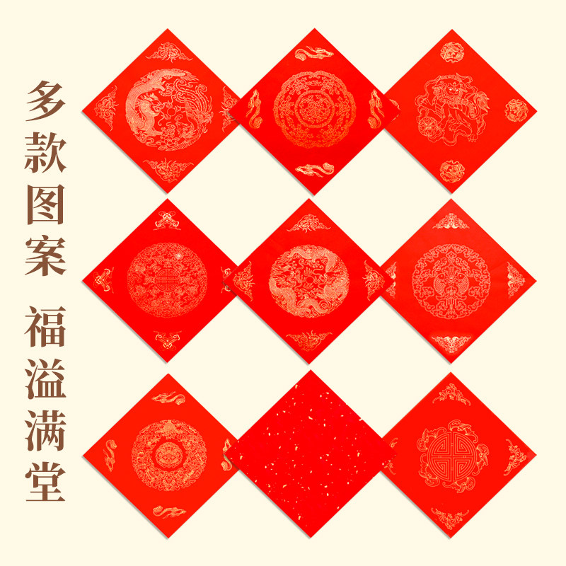 📚 加厚福字红纸万年红蜡染红宣纸对联专用纸空白写福字的红纸空白自写书法福字纸斗方春节红色春联纸批发方形纸