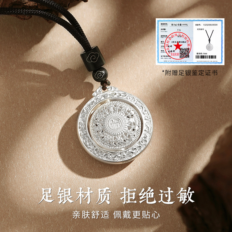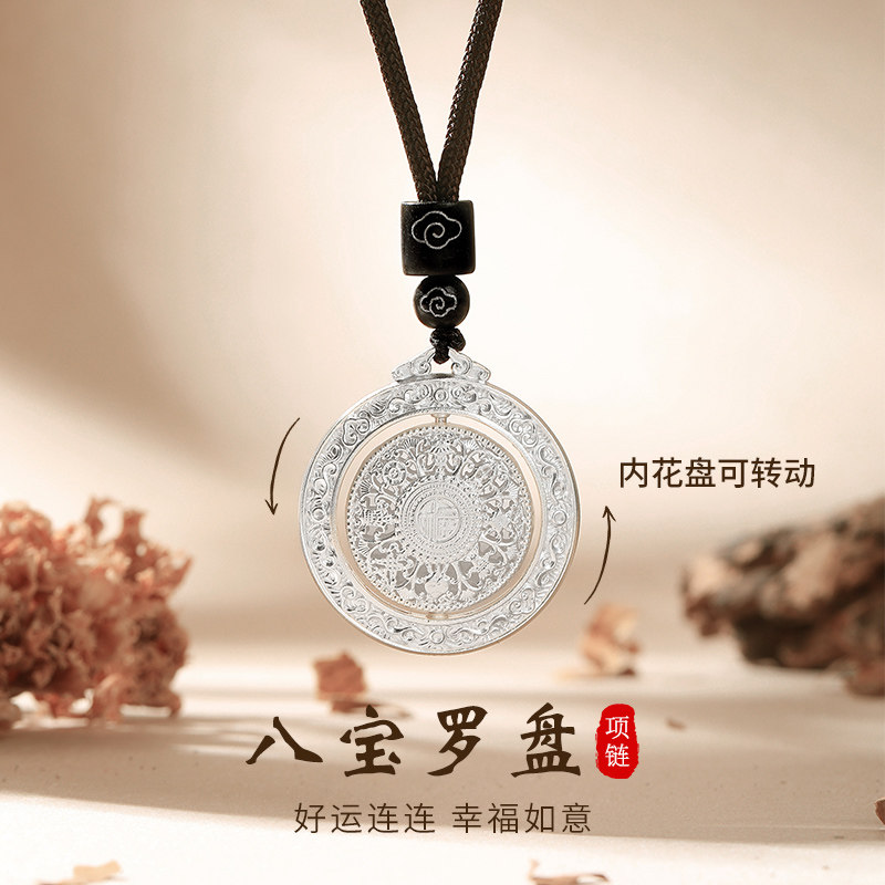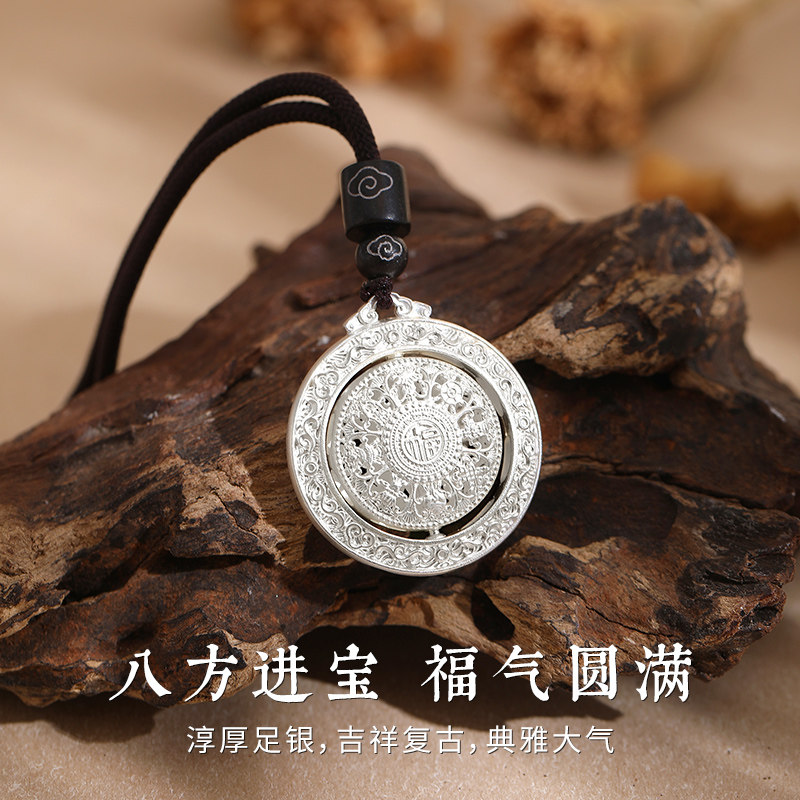 📚 999纯银八宝罗盘项链男款高级感转运吊坠男士情人节礼物送男女友