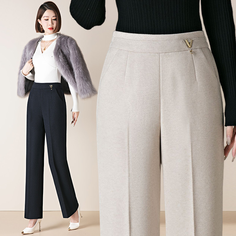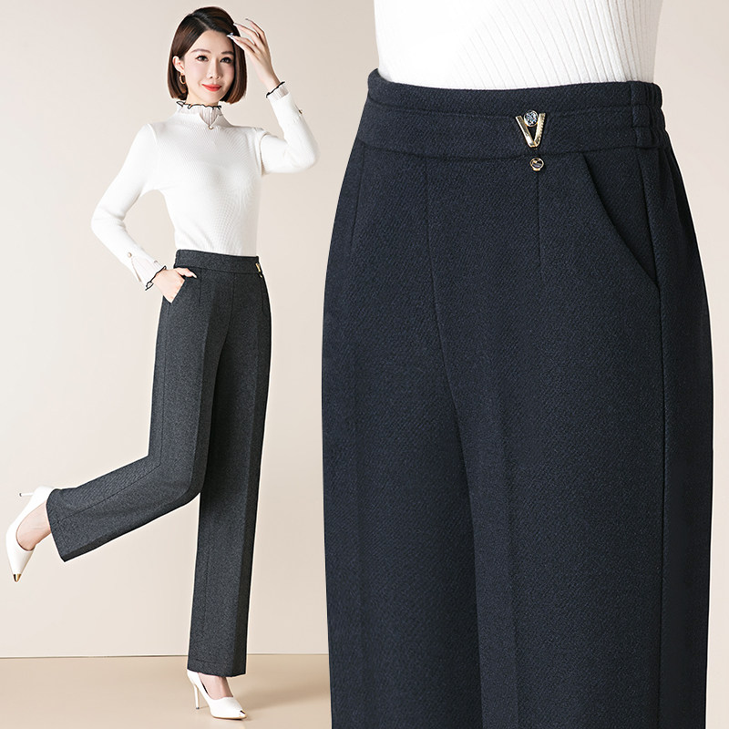 📚 妈妈裤子外穿秋冬加厚单裤高腰直筒宽松中老年人裤子女羊毛裤大码