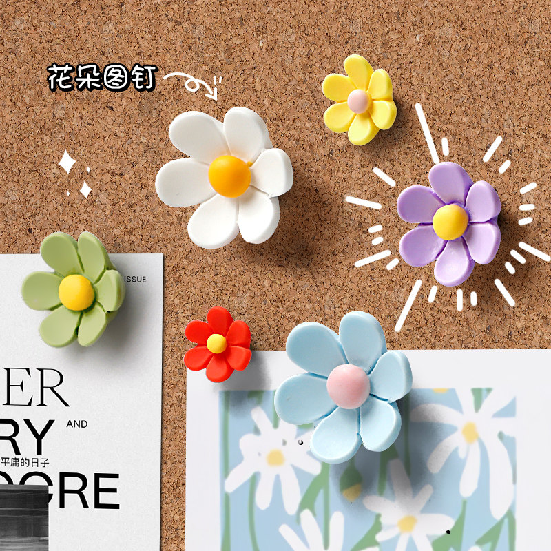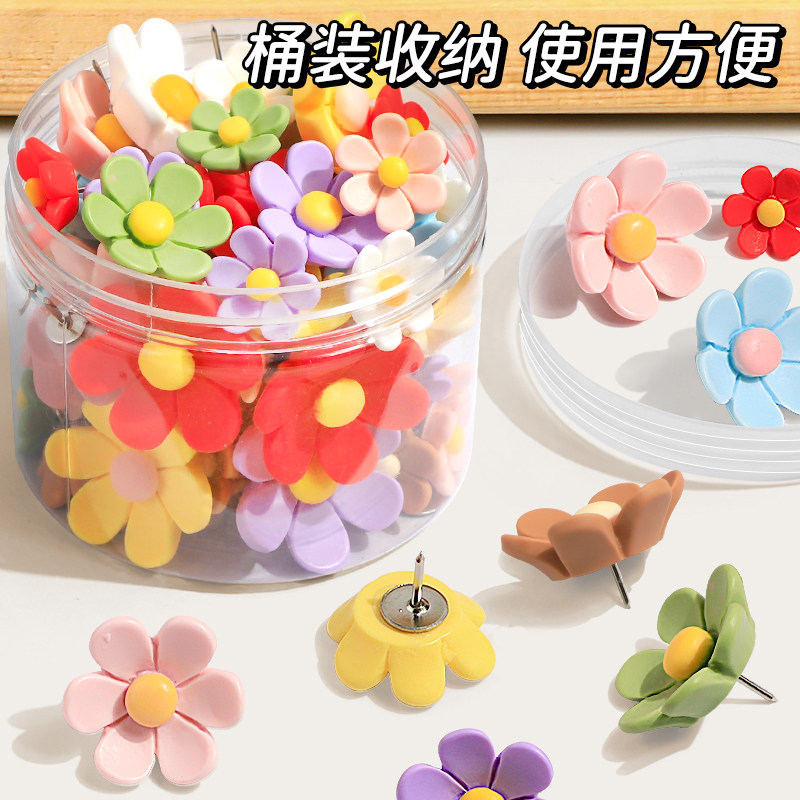 📚 ins花朵彩色图钉毛毡墙按钉创意可爱工字钉大头钉毛毡板钉子软木板配件幼儿园照片墙固定器摁钉装饰品点缀
