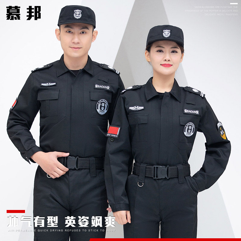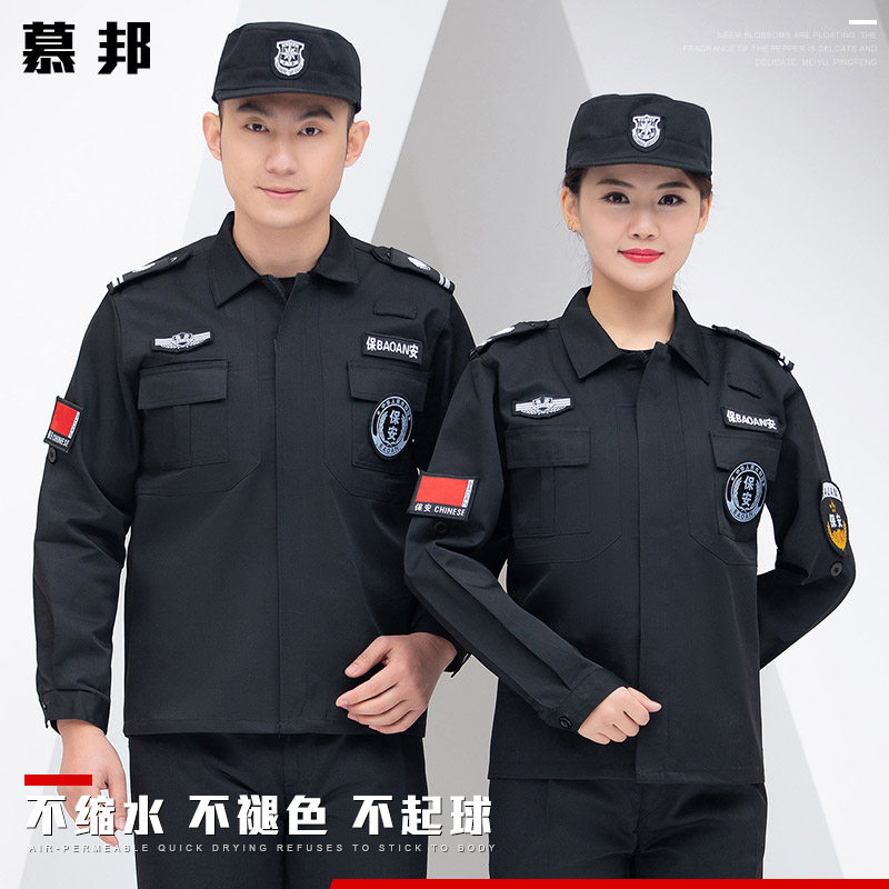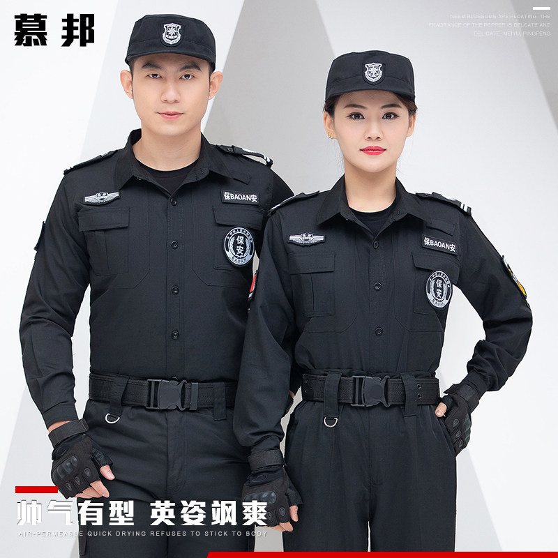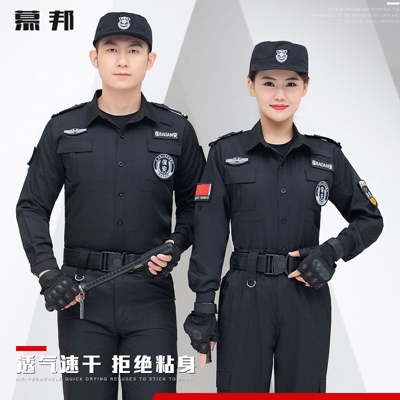 📚 黑色保安工作服夏装套装男短袖制服衬衣透气薄款春秋夏季长袖上衣