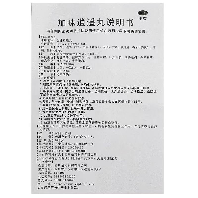 📚 蜀中 加味逍遥丸 6g*10袋/盒 舒肝清热 健脾养血 LY