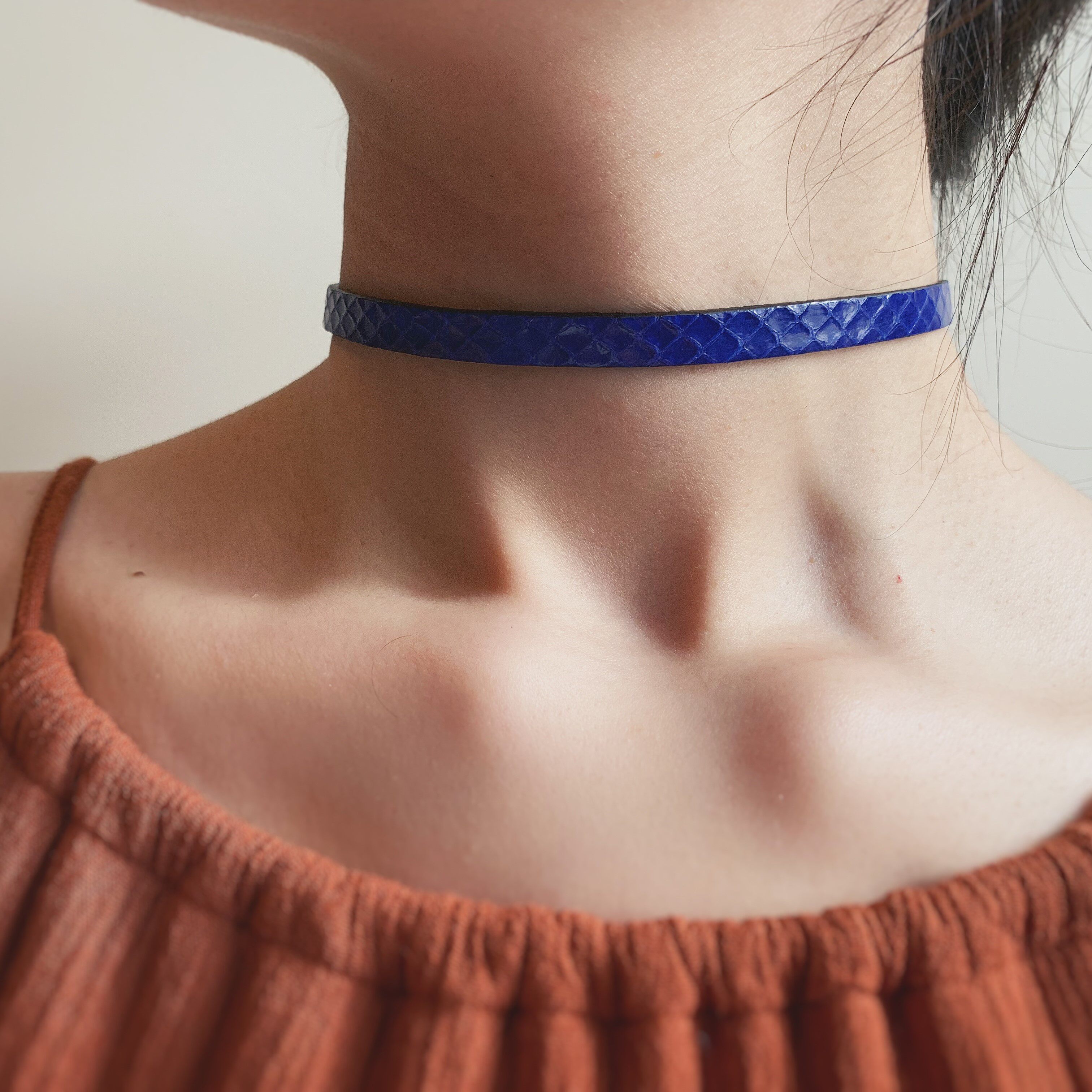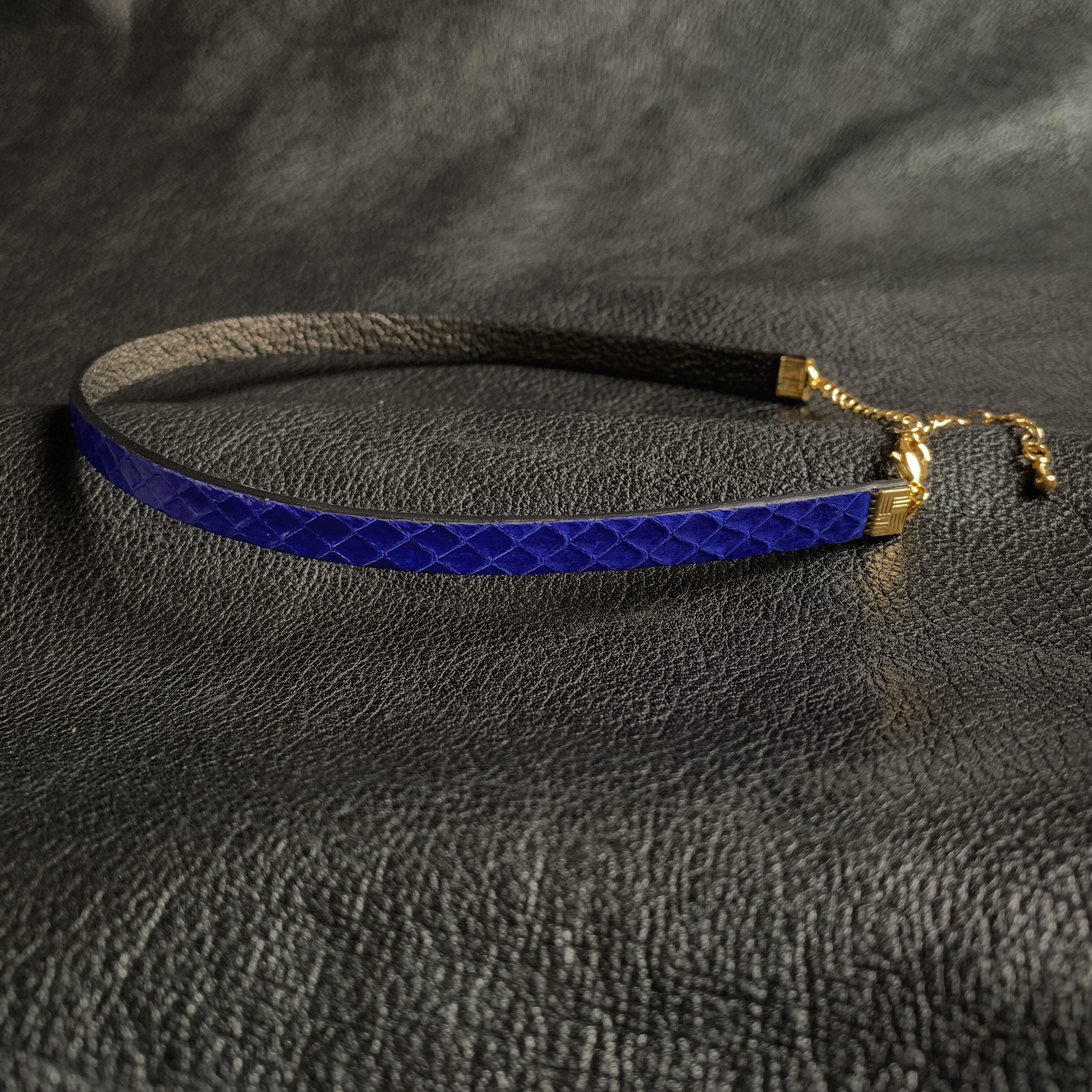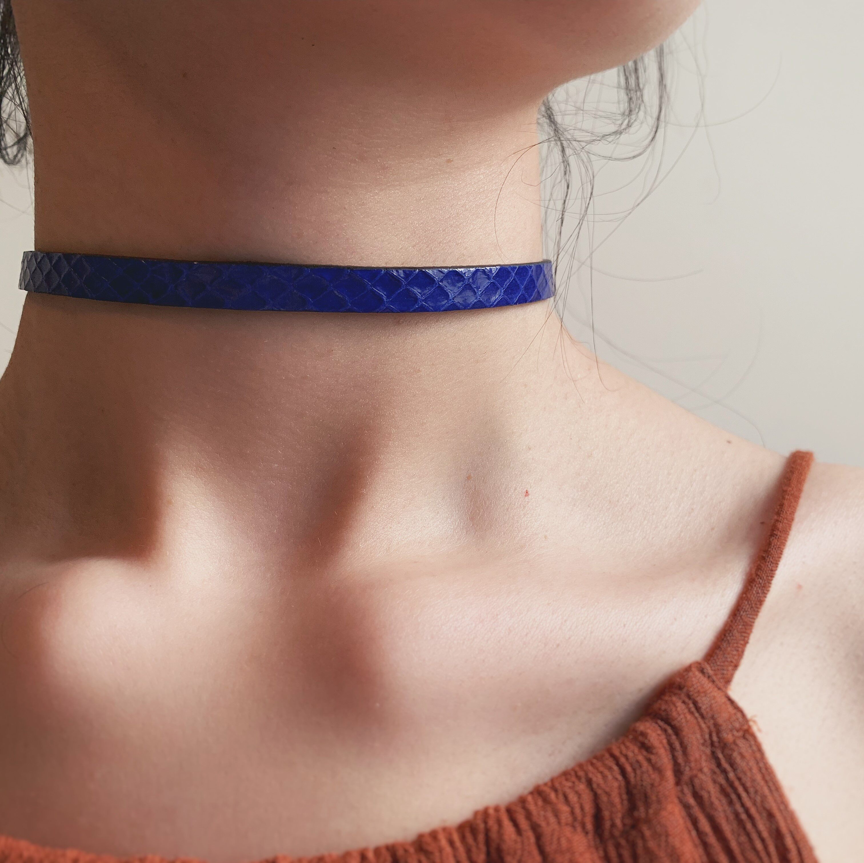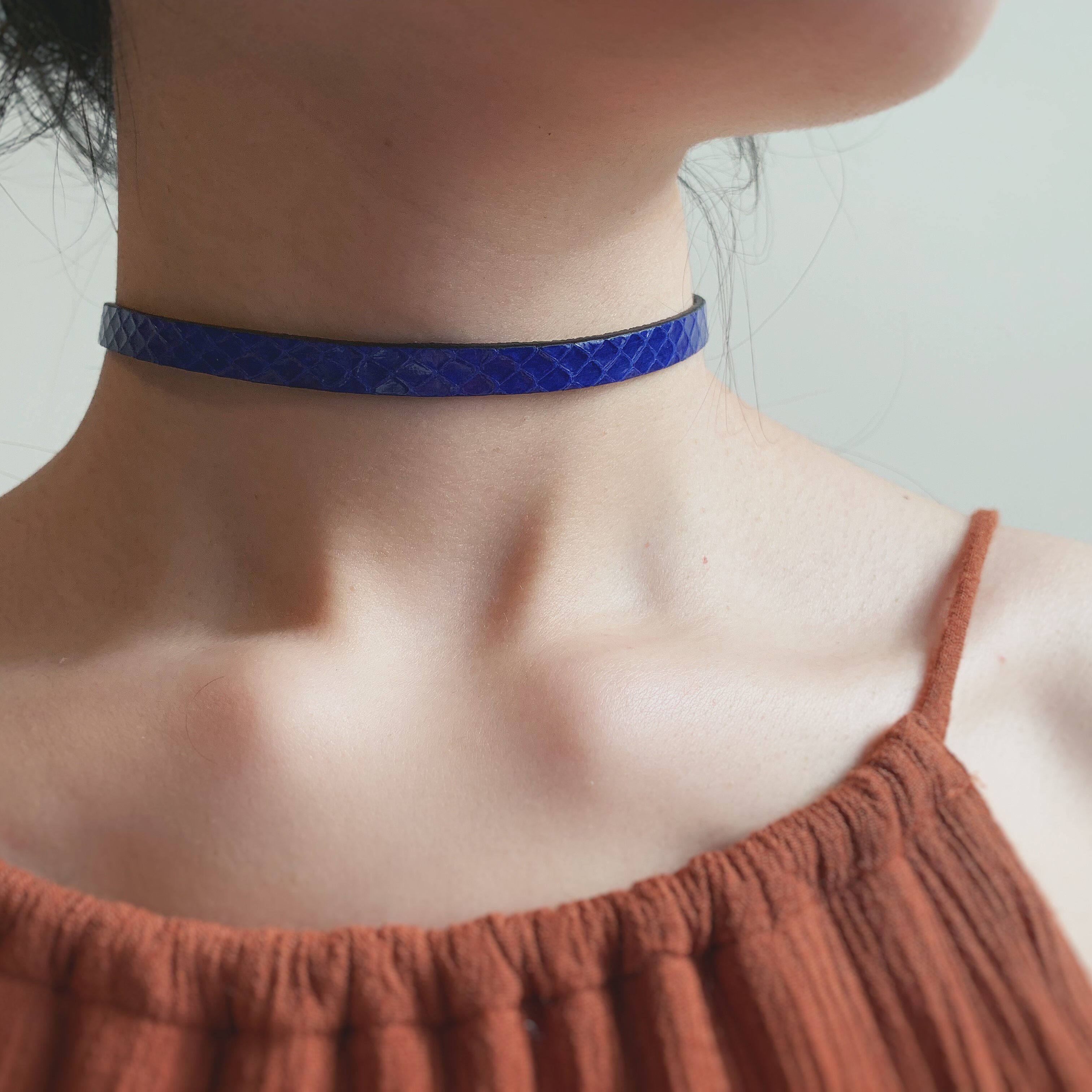 📚 SunSets原创手工蛇皮choker锁骨链女颈环羊皮项圈极简ins克莱因蓝