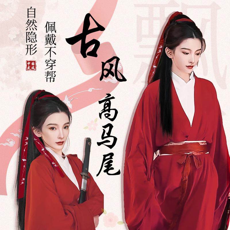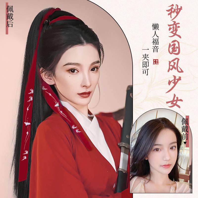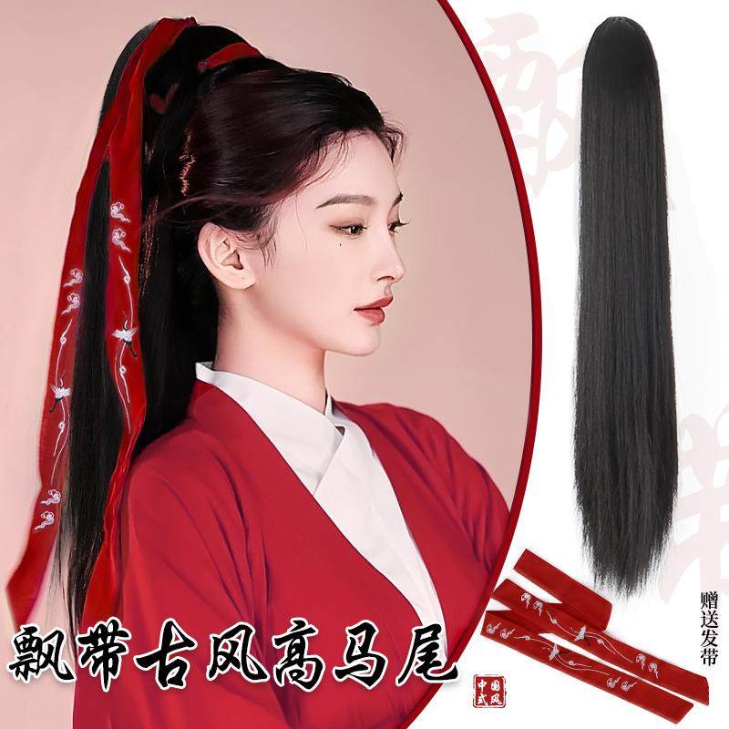 📚 马尾假发抓夹女长直发古装汉服造型高马尾自然仿真发可扎假发辫子