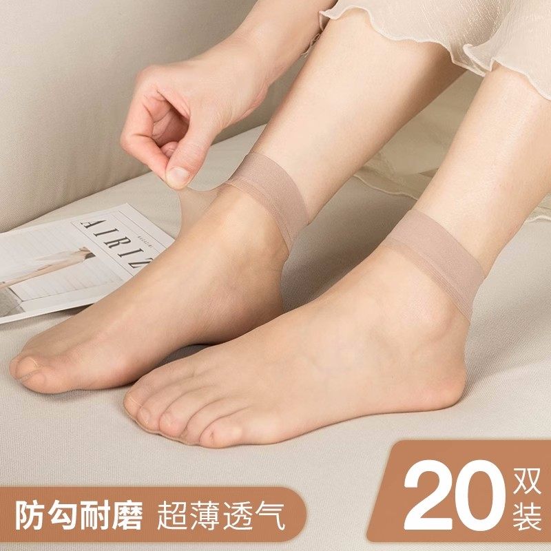 📚 20丝袜女短肉丝袜 超薄性感薄款夏季脚尖透明 隐形水晶丝短袜品彩