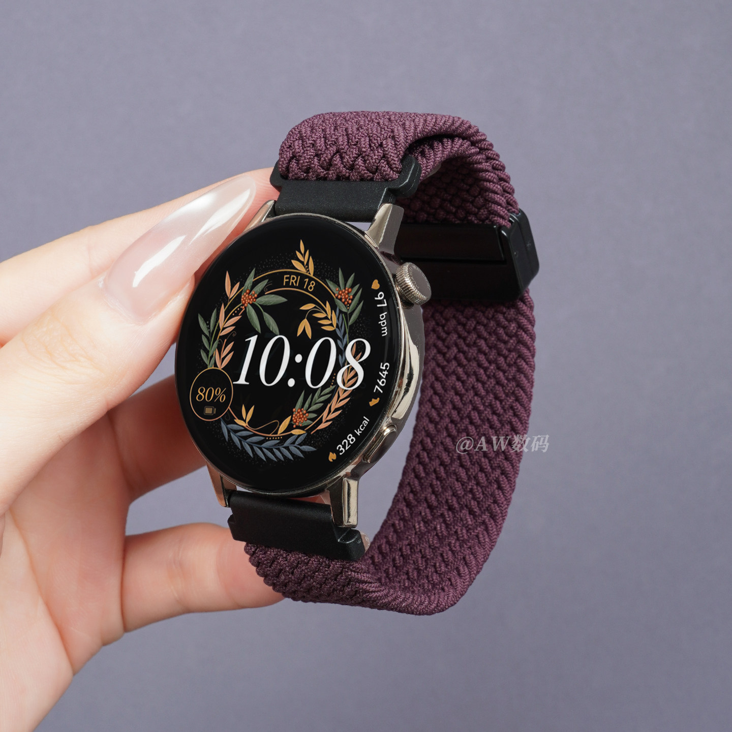 📚 适用华为GT3表带gt5/6手表女款烟紫色watch5编织尼龙3pro磁吸扣gt4女生FIT3运动男士2智能FIT4高级感秋冬腕带