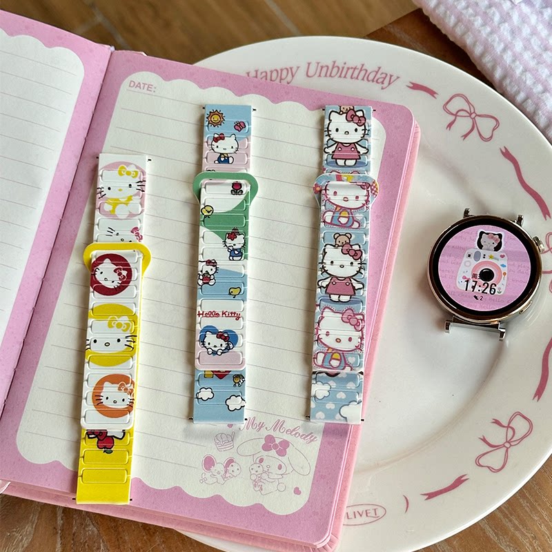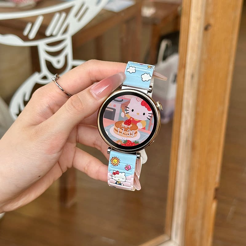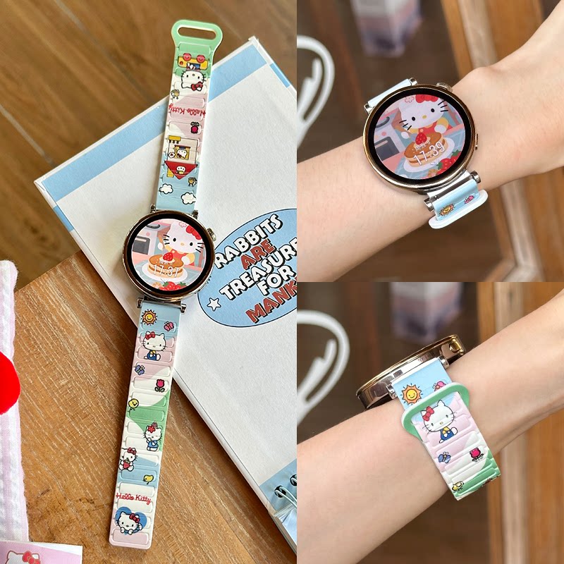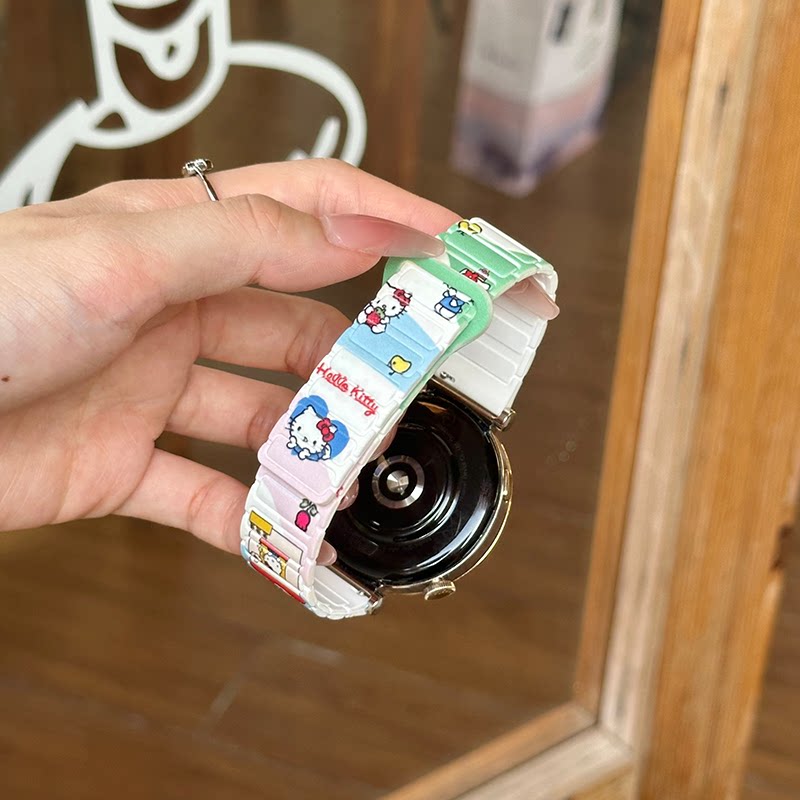 📚 适用华为GT56表带Gt4手表kt猫印花硅胶磁吸腕带watch3Fit4Pro运动