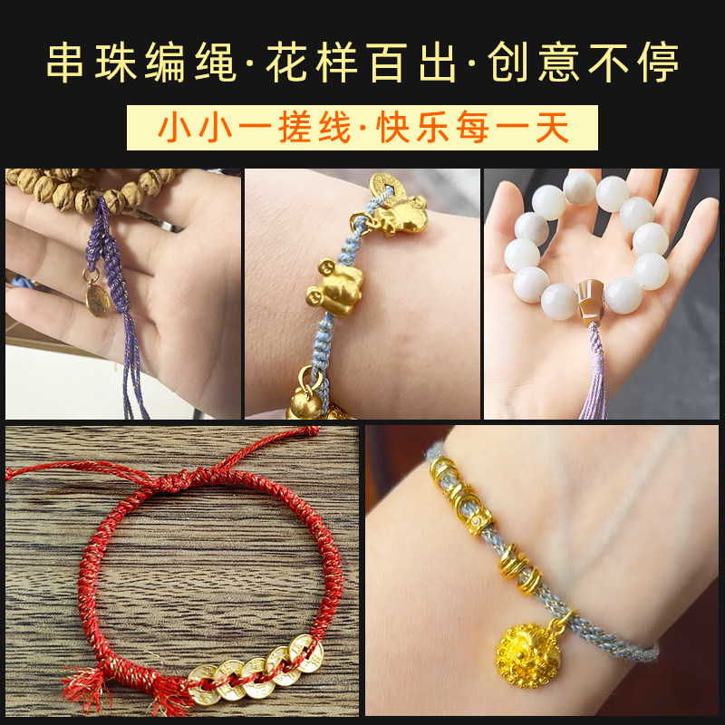 📚 藏式加金手搓棉线手工编织绳文玩盘缠串珠耐磨佛珠手串绳蒙古棉线