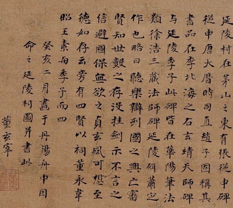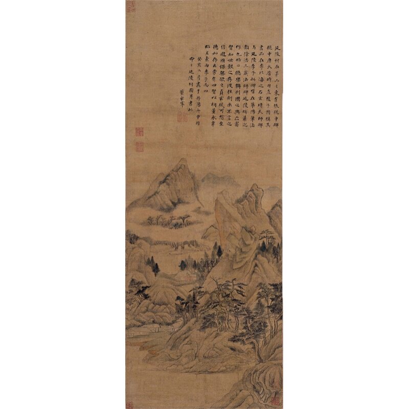 📚 明董其昌延陵村图轴原大挂画客厅仿古字画高清复制品微喷卷轴临摹