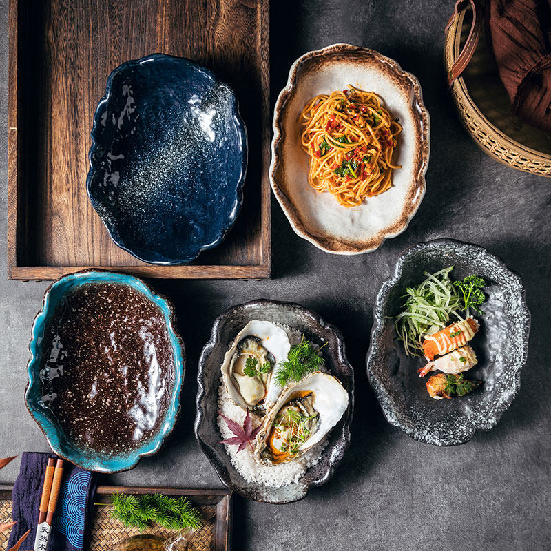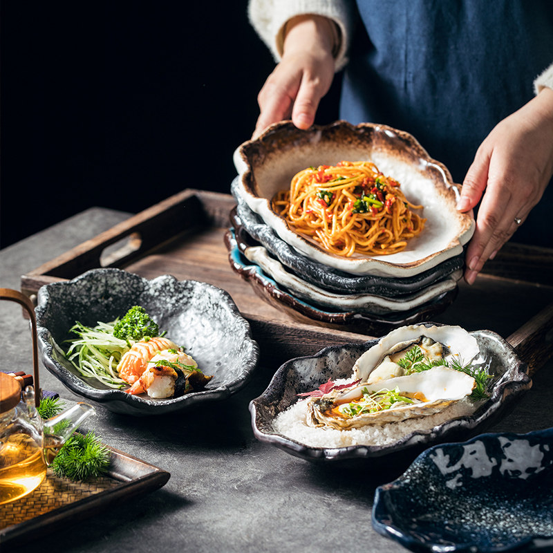 📚 日式餐厅料理刺身碗创意陶瓷餐具石纹碗碟套装家用餐桌高颜值组合