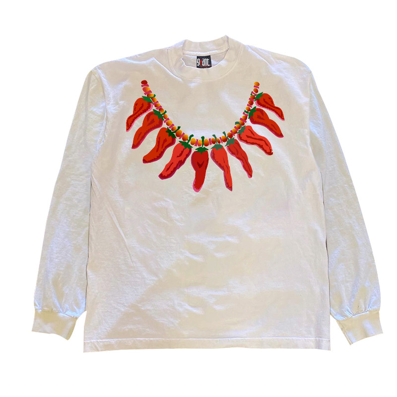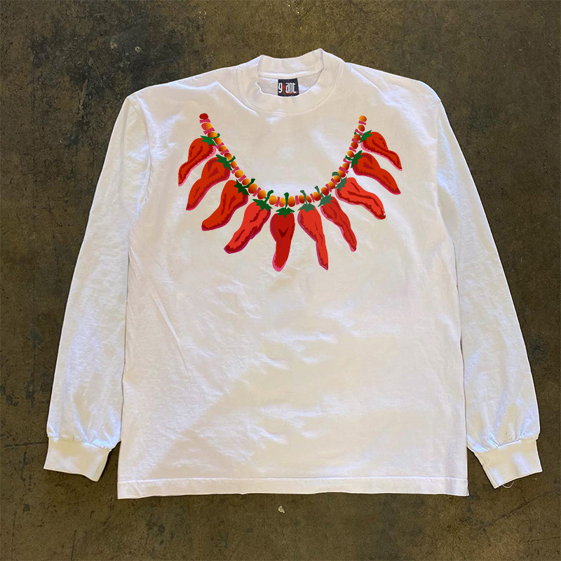 📚 90s90s90s 重磅不透 一串红辣椒搞怪印花小众早秋宽松百搭长袖T恤