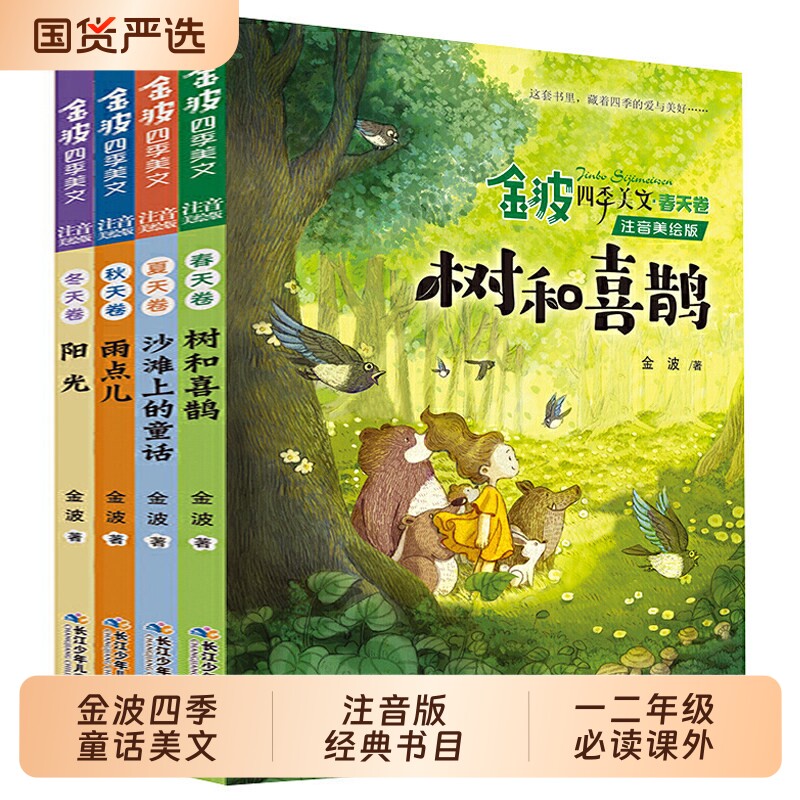 📚 金波四季美文金波四季童话注音美绘版套装全套4册雨点儿 阳光 树和喜鹊儿童文学中小学阅读一年级二年级课外阅读6-9-12岁课外阅读