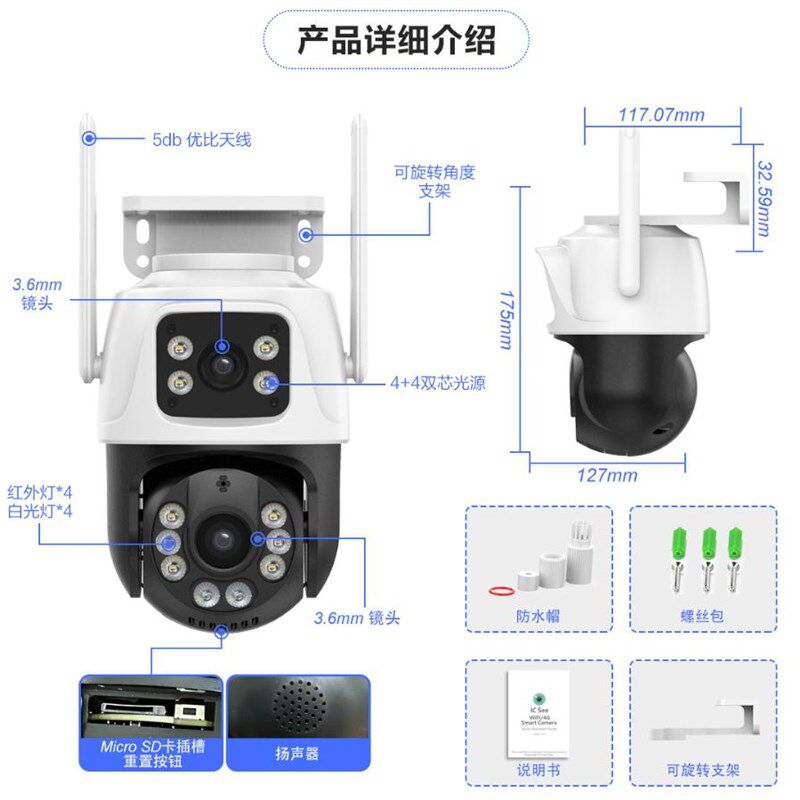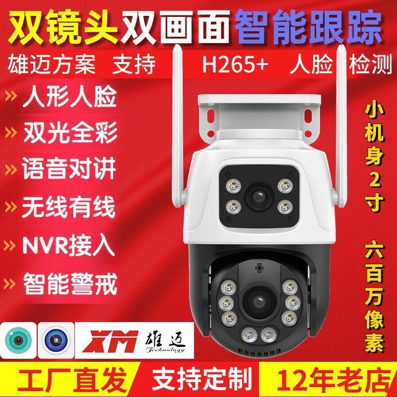 📚 雄迈360度球机监控摄像头无线WIFI手机远程双画面跟踪 超级看看